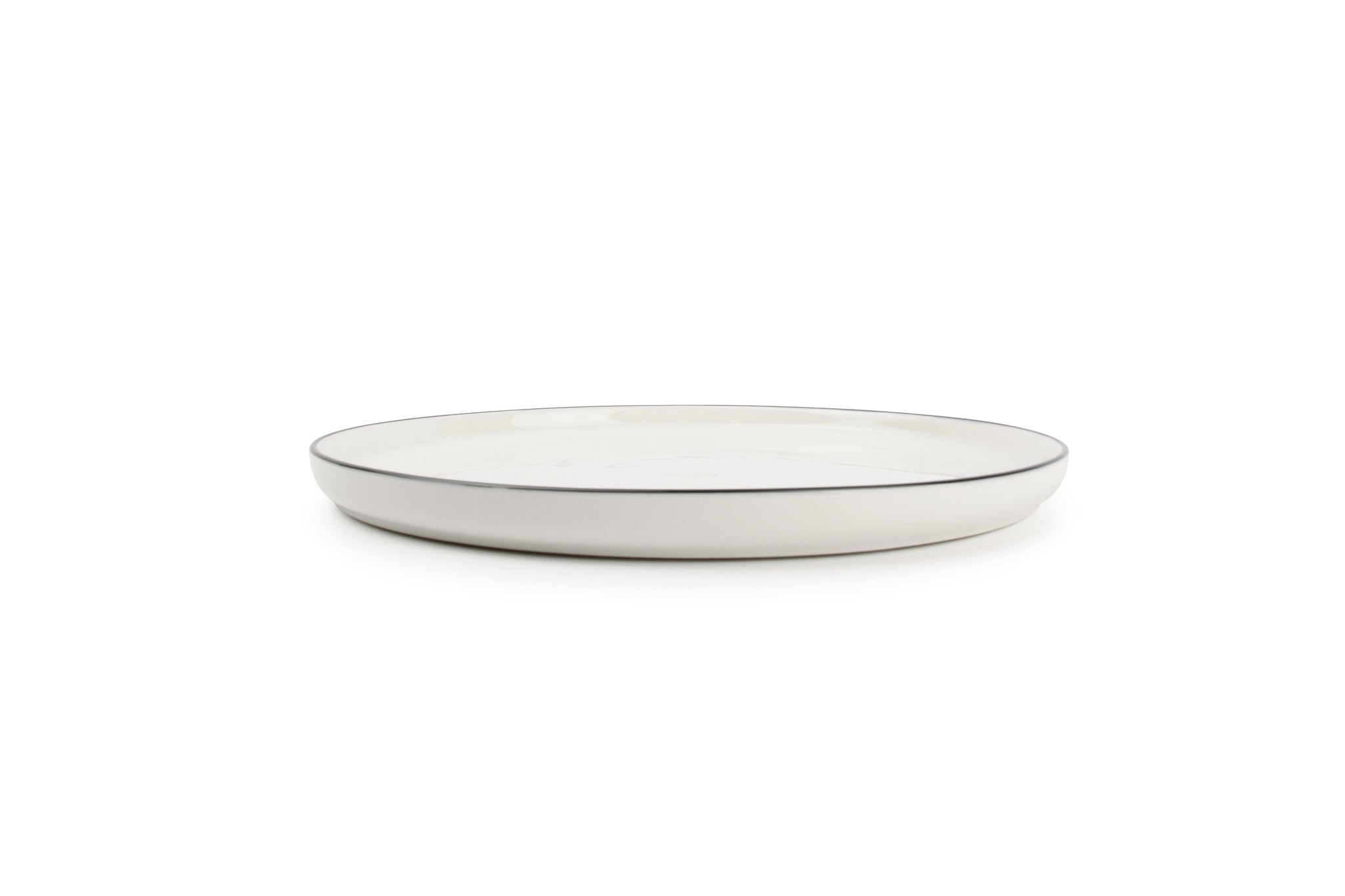 Het Studio Base servies brengt ons terug naar de basis. Deze collectie kenmerkt zich door een elegante, witte vorm gecombineerd met een zwarte rand. Door zijn moderne uitstraling en het hoogwaardige porselein is het de perfecte serie voor dagelijks gebruik maar ook voor speciale gelegenheden. Productinformatie Plat bord / dinerbord (set / 4) Artikelnr. 850001 Kleur: wit met zwarte rand Afmetingen Diameter:27 cm Hoogte: 1,8 cm Materiaalinformatie Het STUDIO BASE servies is gemaakt van een hoge kwaliteit porselein. Door de hoge baktemperaturen is porselein harder, sterker en beter bestand tegen krassen dan aardewerk. Magnetron- en vaatwasmachinebestendig
