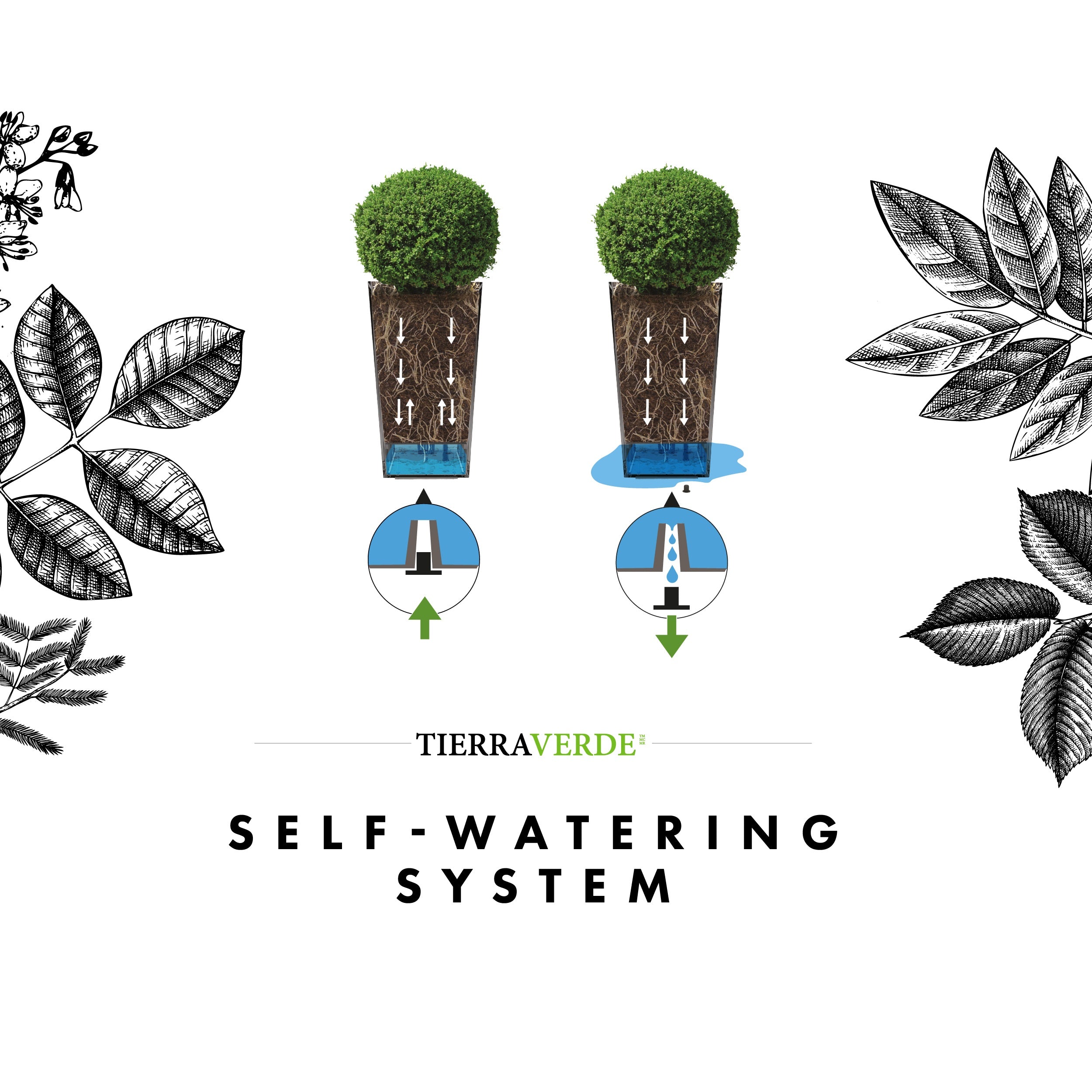 Deze stijlvolle plantenbakken en bloempotten zijn gemaakt van milieuvriendelijk gerecycleerd rubber waardoor deze nooit zullen verkleuren, rotten of barsten. Daarom kan deze bloempot het hele jaar buiten blijven staan.Dankzij een ingebouwd zelfbewateringssysteem zorgt het waterreservoir ervoor dat jouw planten steeds genoeg vocht hebben bij warm weer en voorkomt dit eveneens wortelrot bij overvloedige regen.