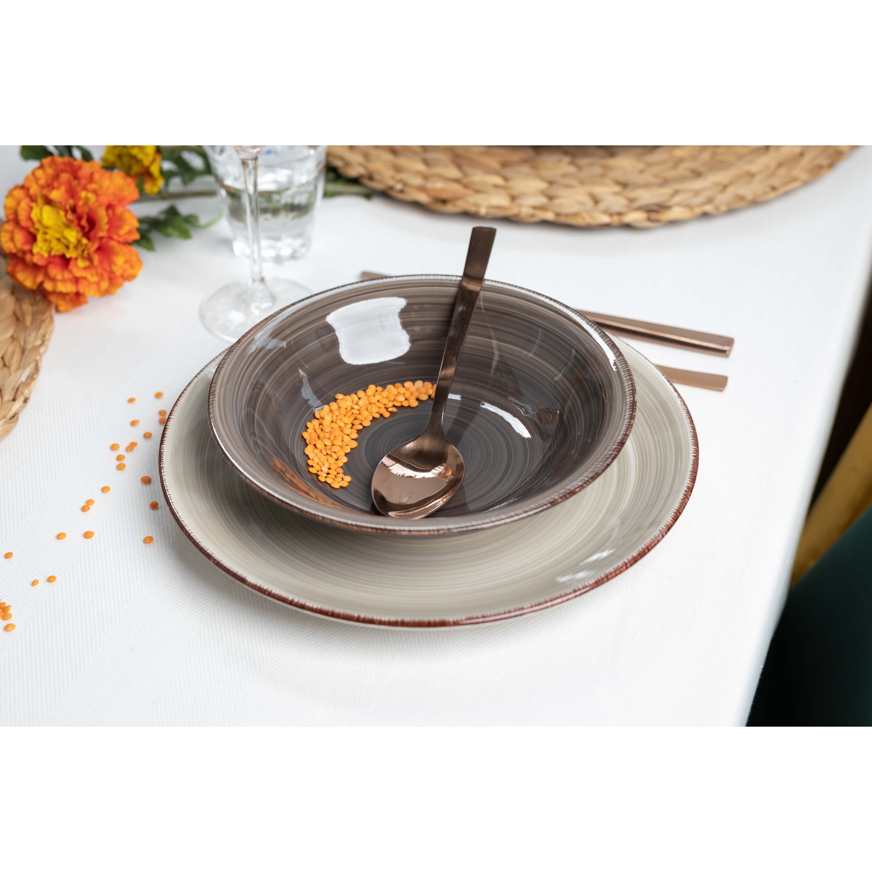 Wil je graag een keer iets anders dan je standaard witte serviesset, maar wil je niet te veel uitpakken? Kies dan voor deze Studio Tavola Vintage Loft serviesset. De prachtige neutrale kleuren zijn anders, maar vallen zeker niet te veel op. Let wel op: deze borden worden gemixt geleverd, er kan dus geen kleur gekozen worden. De set bestaat uit: