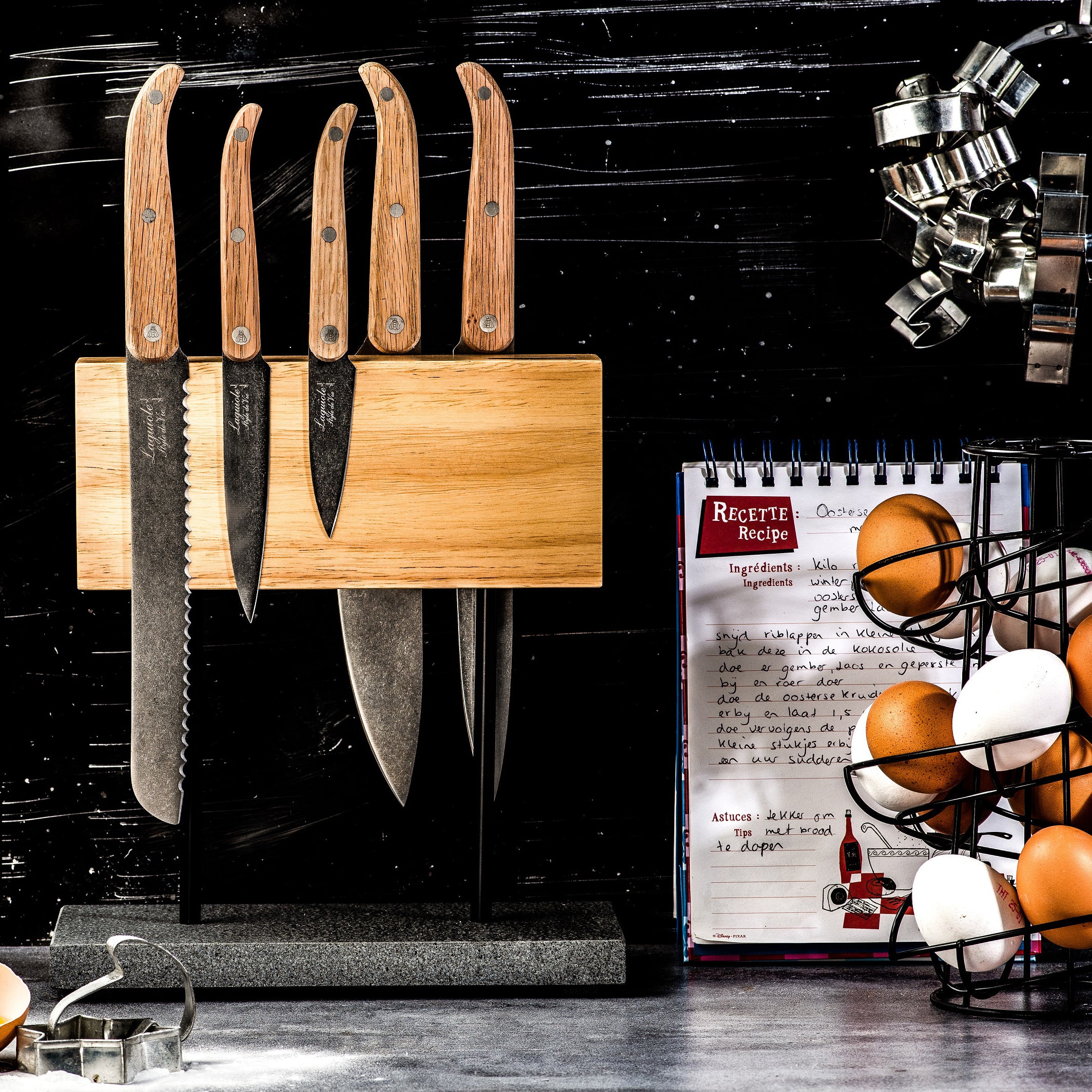 Of je nu kiest voor eiken, walnoot of olijfhout. Je messen hang je aan de mooiste messenmagneet van Style de Vie. De keuken oogt direct een stuk stoerder.