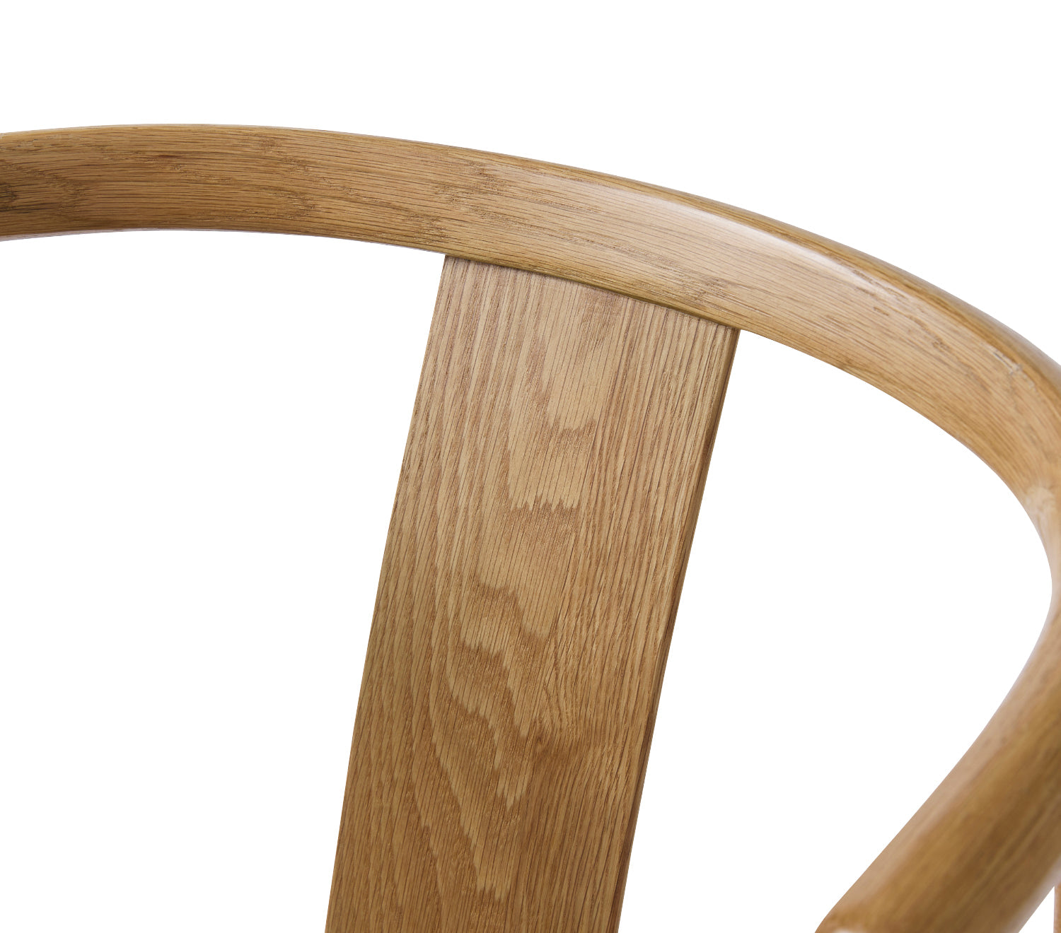 Sumatra is eenvoud in zijn meest elegante vorm. Het lichte eikenhout geeft deze stoel een warme, natuurlijke uitstraling, terwijl de afgeronde rugleuning en subtiele stoffering zorgen voor comfort zonder opsmuk. De open vorm maakt ‘m luchtig en verfijnd, perfect voor wie houdt van balans en rust in het interieur.