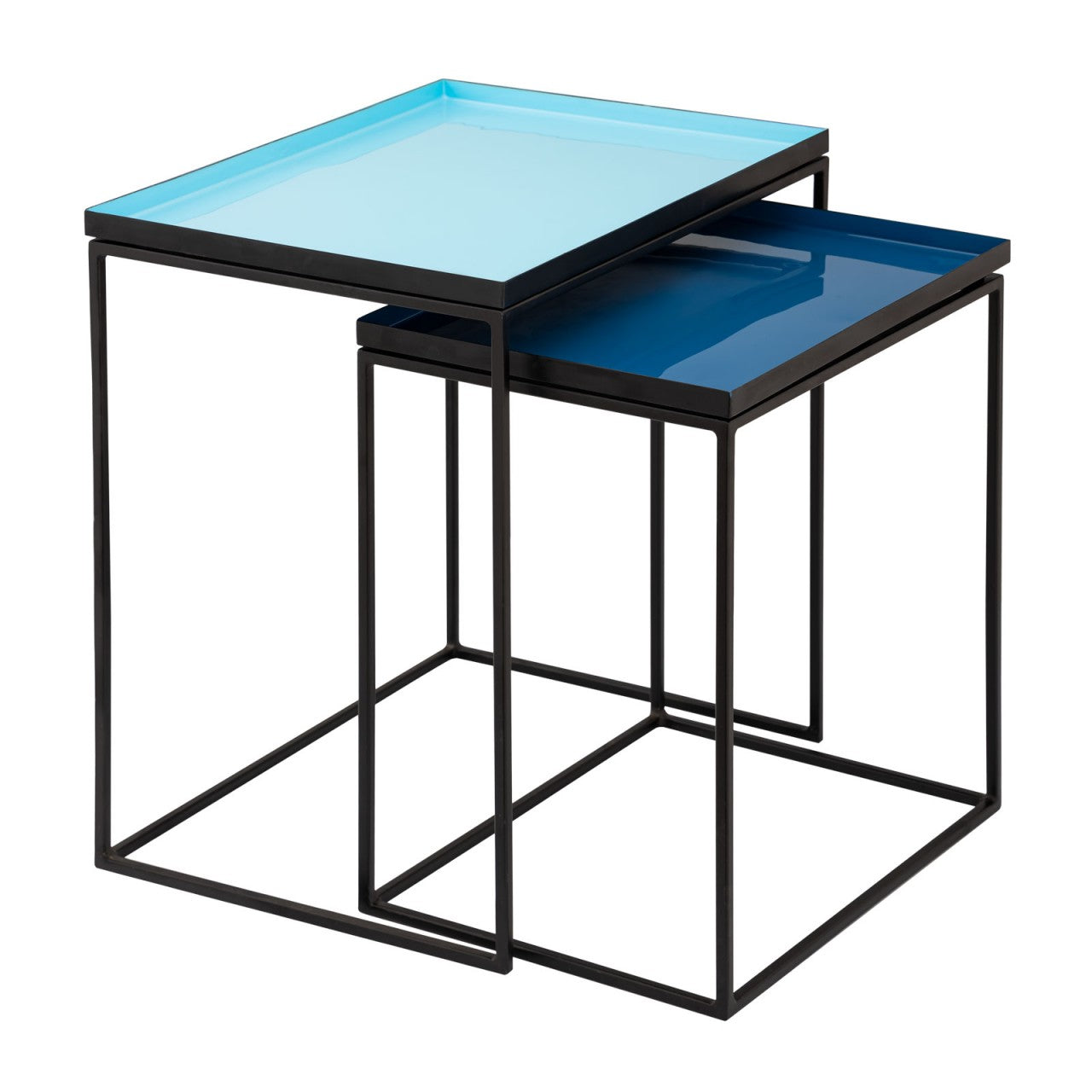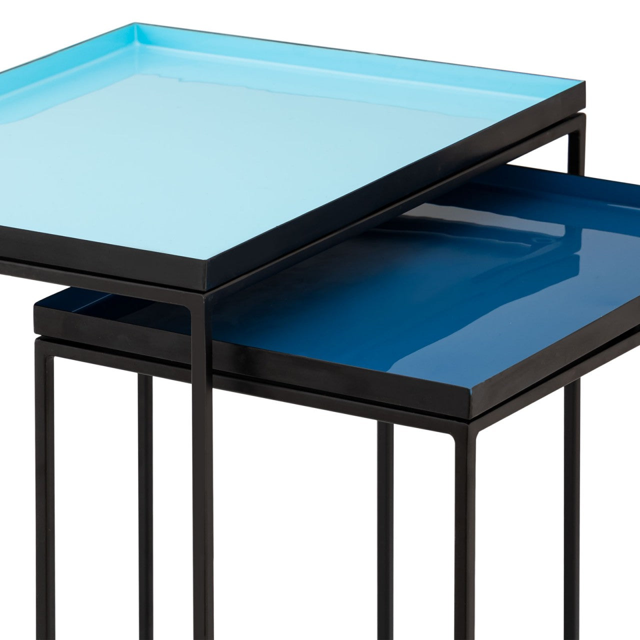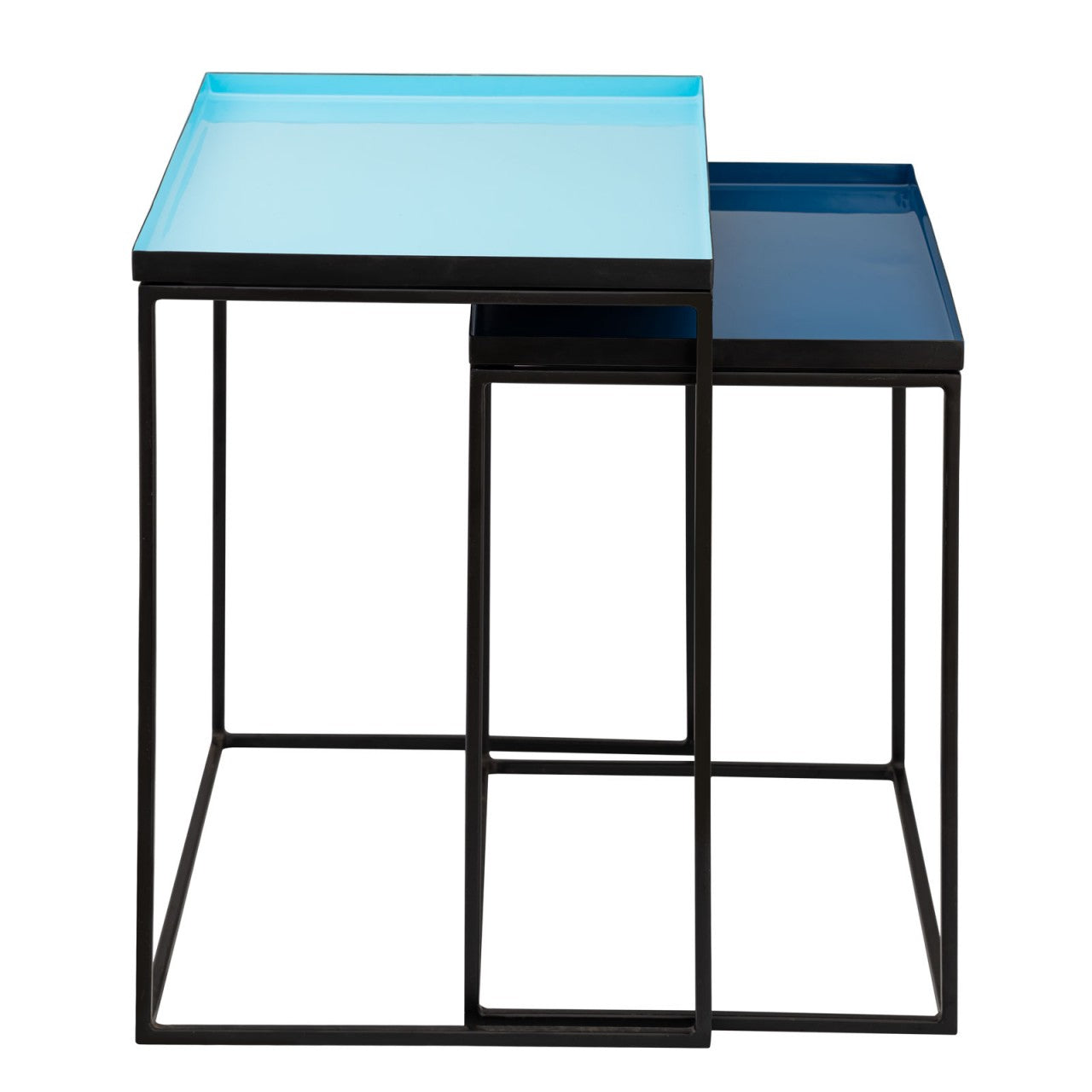 SVJ Bijzettafel Rechthoekig - 36x48x50 cm - Metaal - Blauw - Set van 2