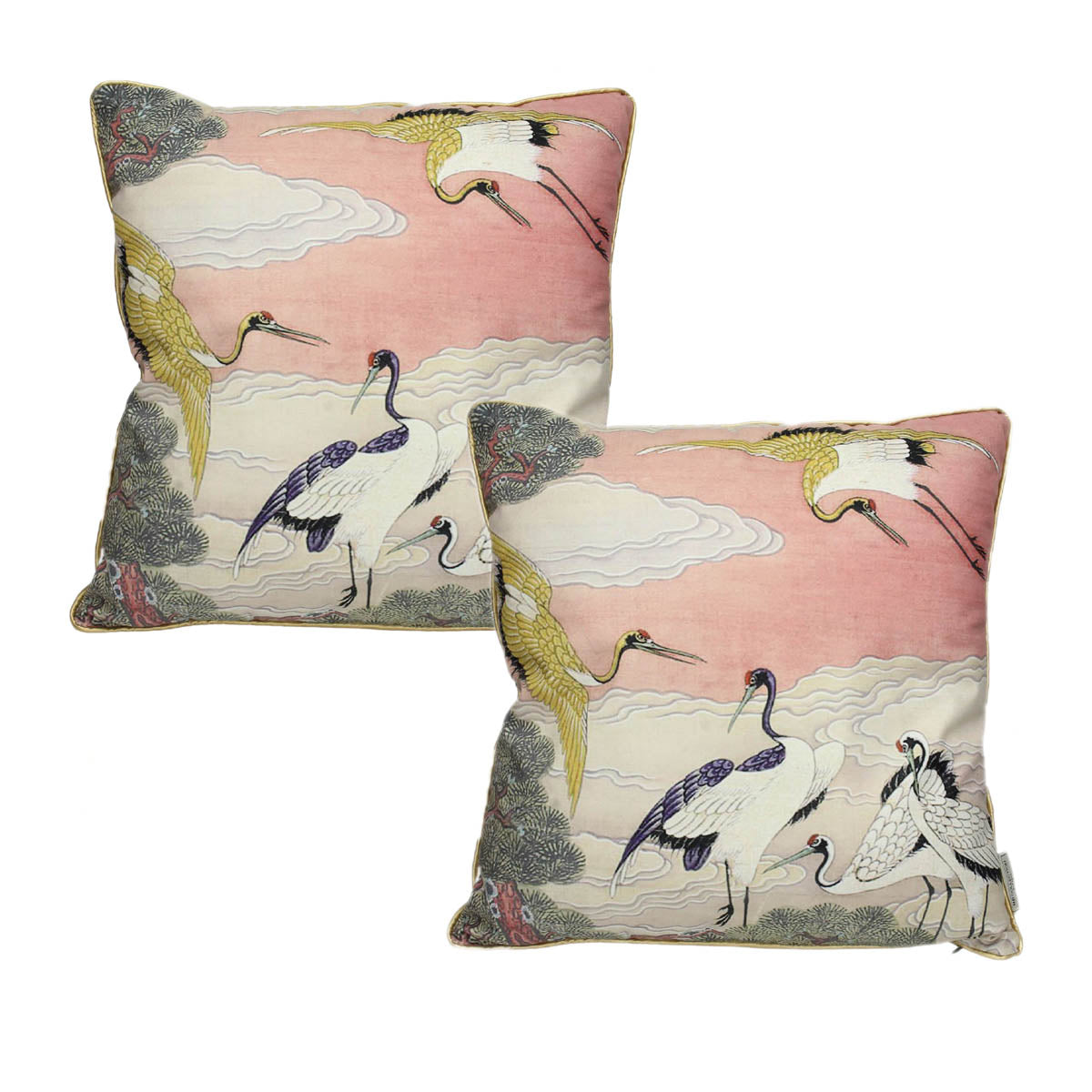 SVJ Kraanvogel Sierkussen - 45x45 cm - Fluweel - Set van 2