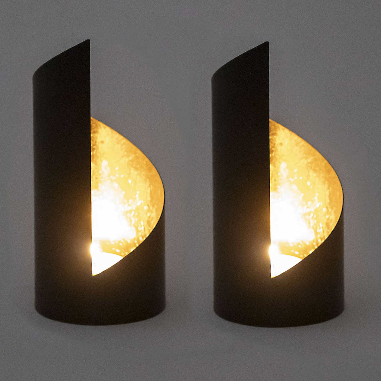 SVJ Windlichten Rond - 8 x 8 x 18 cm - Metaal - Zwart|Goud - Set van 2