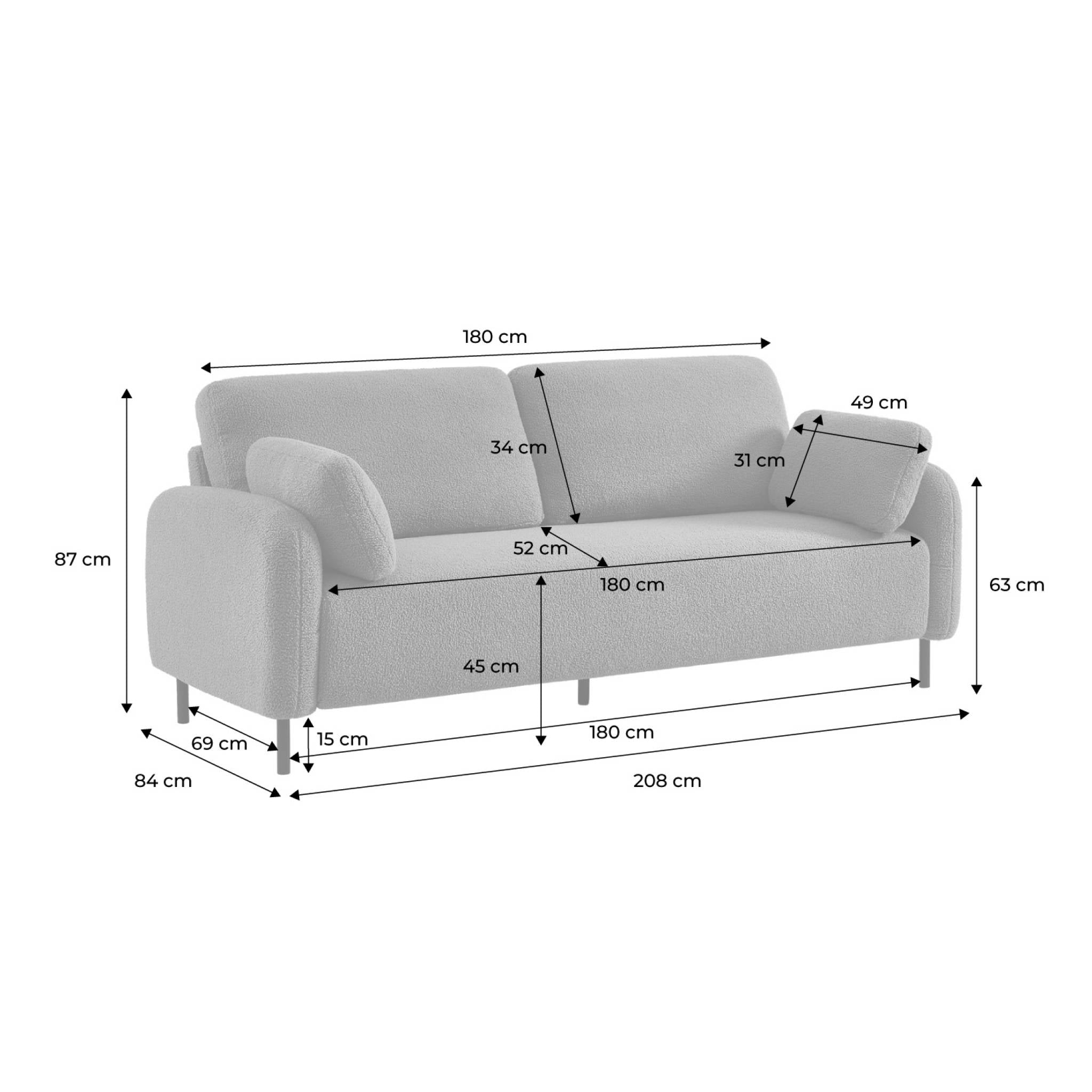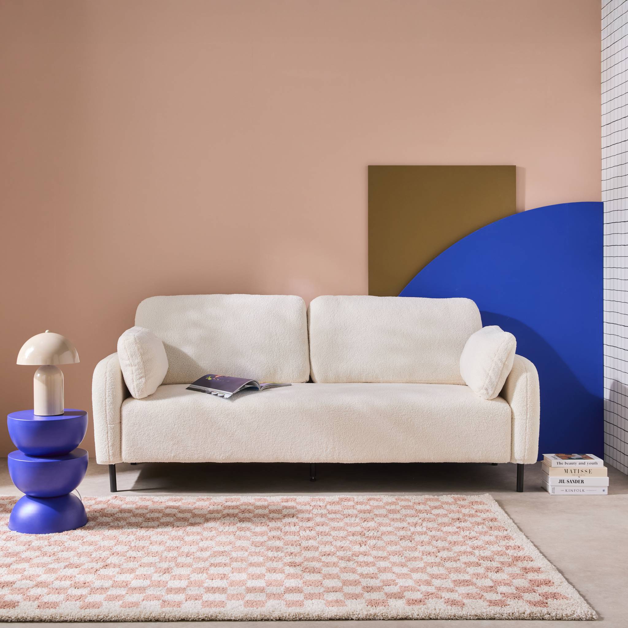 sweeek - 3-zits bank in wit bouclé en metalen onderstel