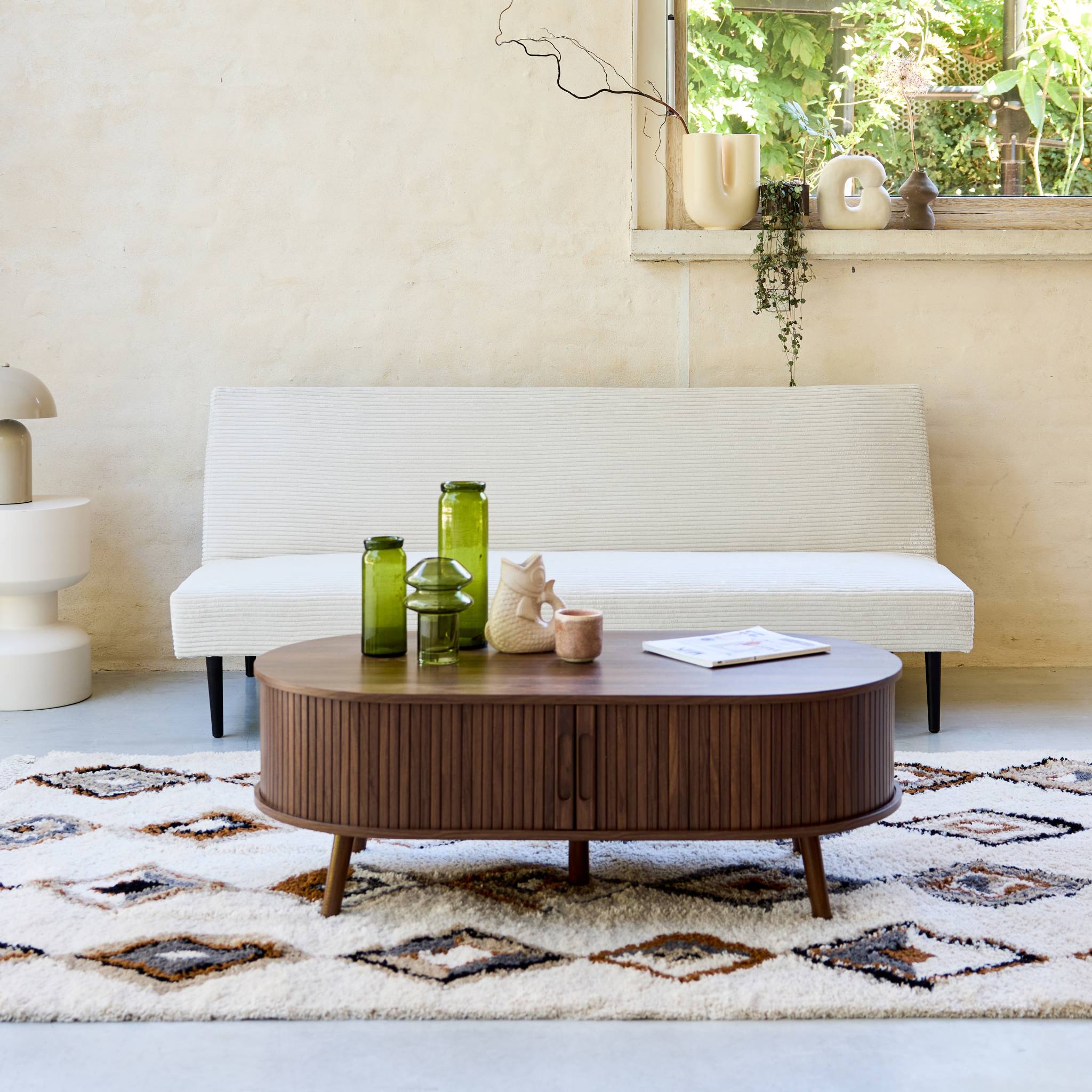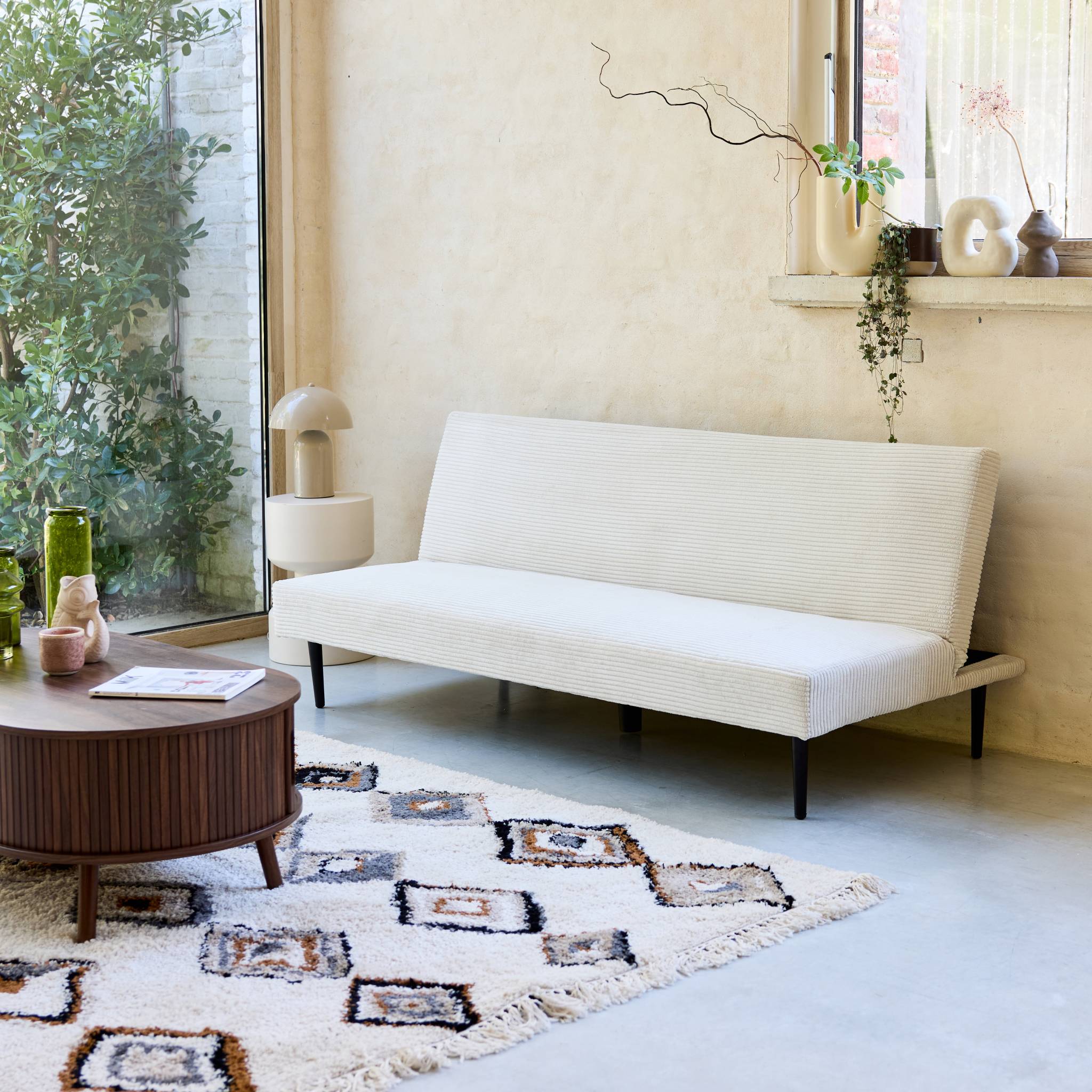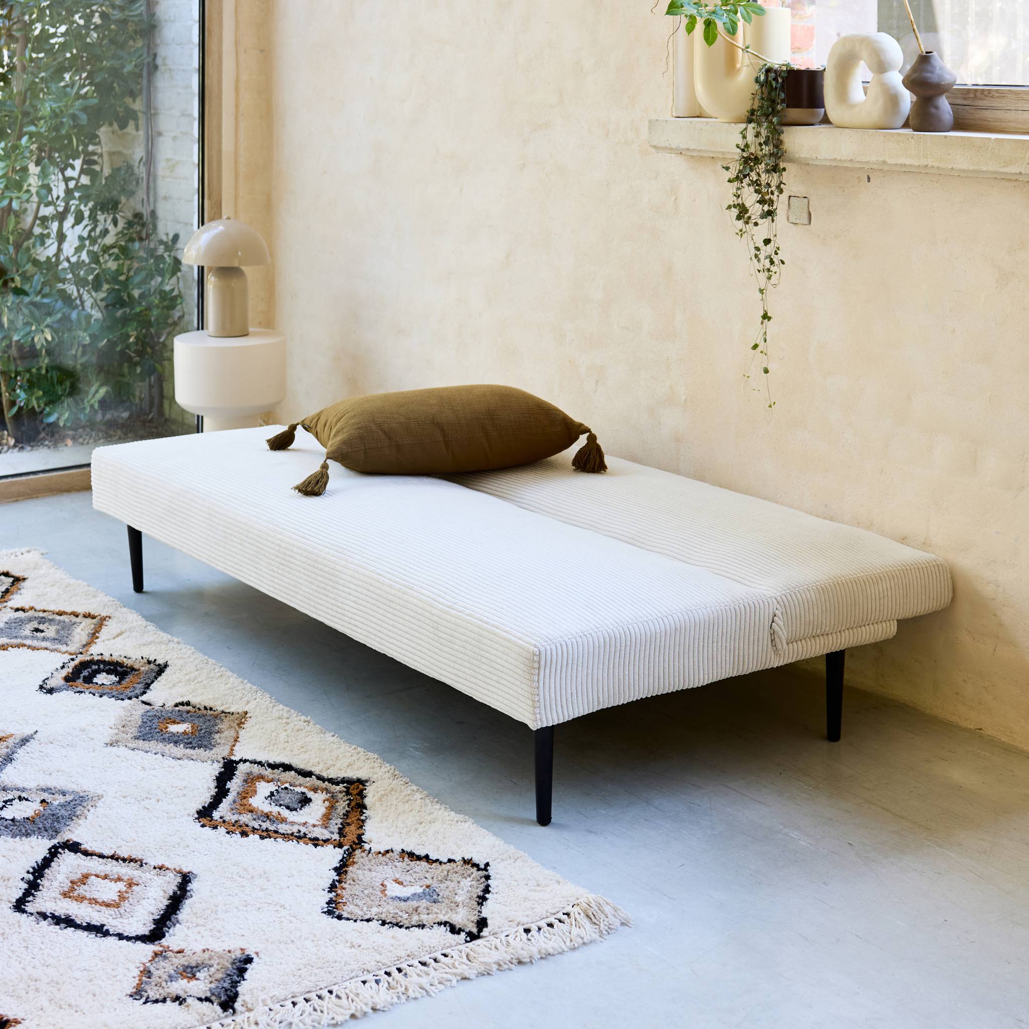 sweeek - 3-zits slaapbank corduroy, metalen onderstel