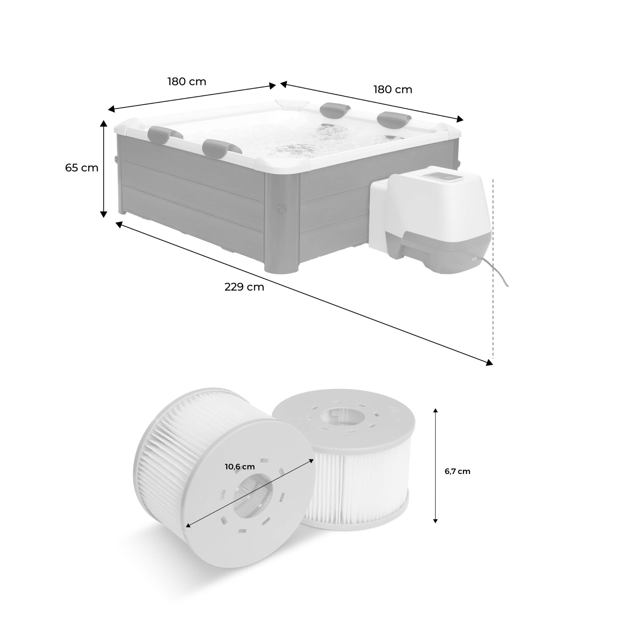 sweeek - 6-persoons vaste spa 180cm grijs hydromassages 4 kussens 8