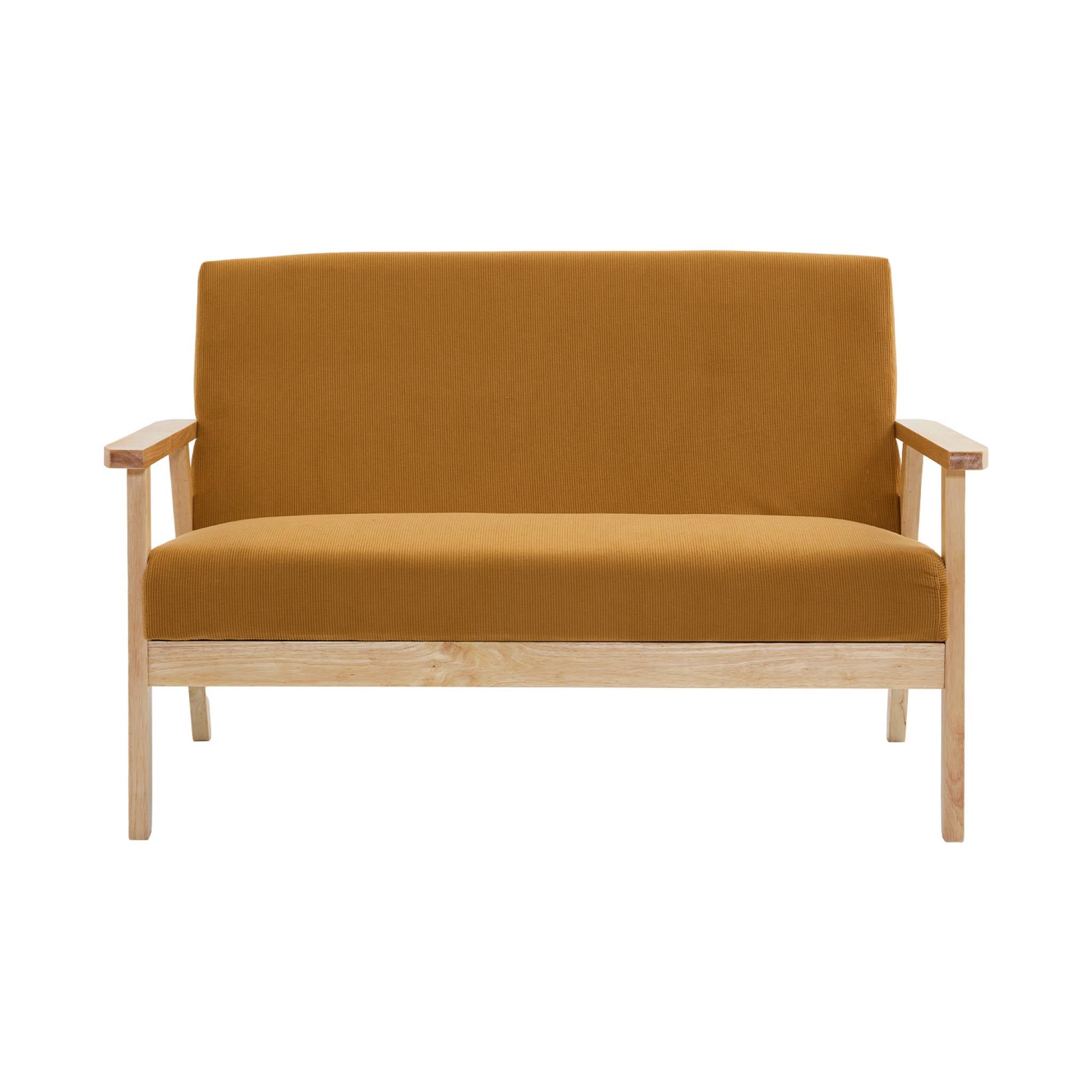 sweeek - Bank 2-zits + fauteuil, corduroy, houten poten.