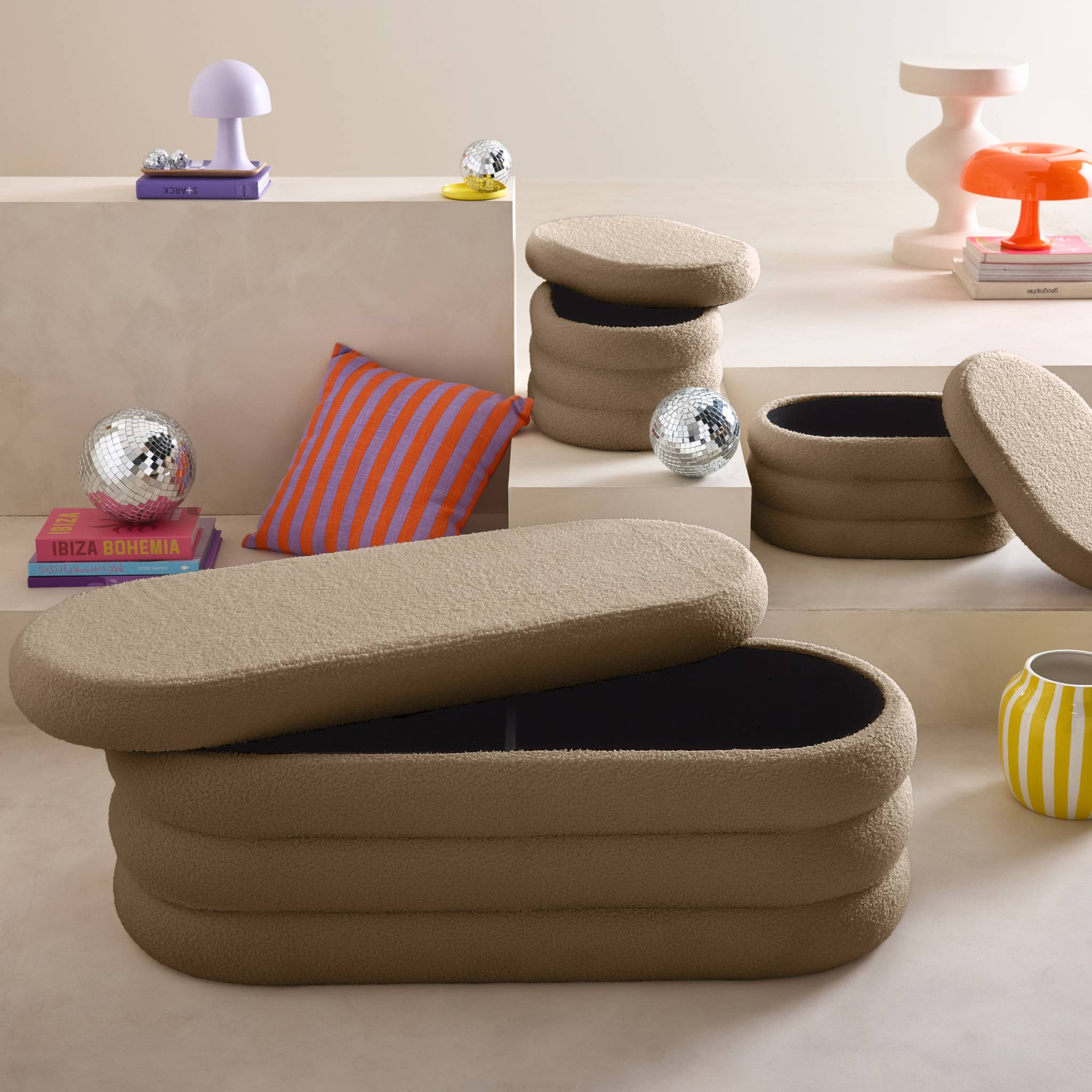 sweeek - Bankkist met 2 opbergpoefjes in boucléstof