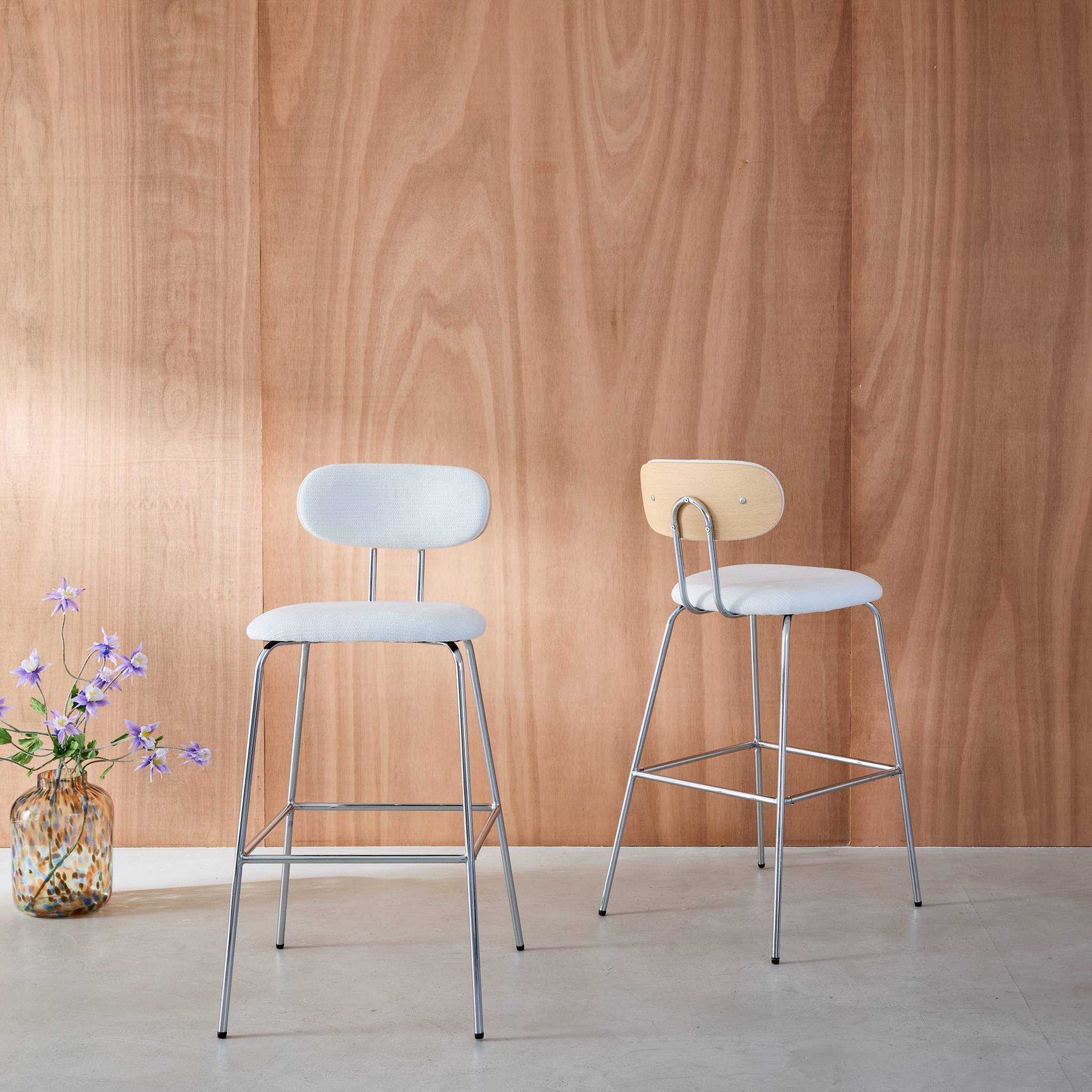 sweeek - Barkruk met gebogen eikenhoutdecor en waterafstotende stof,