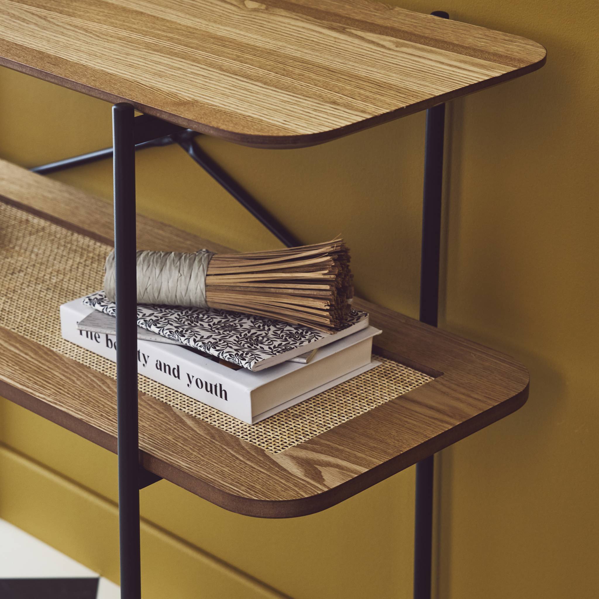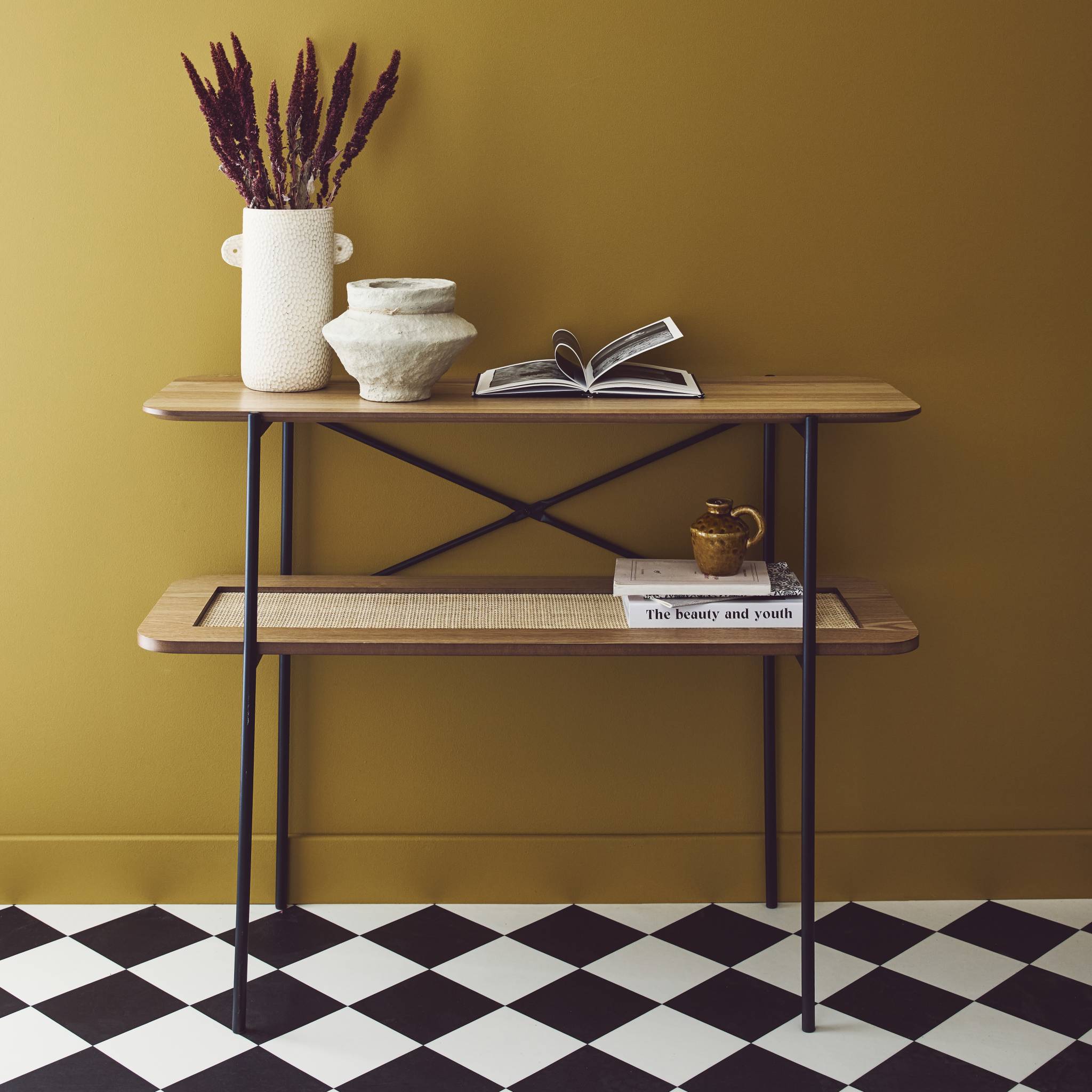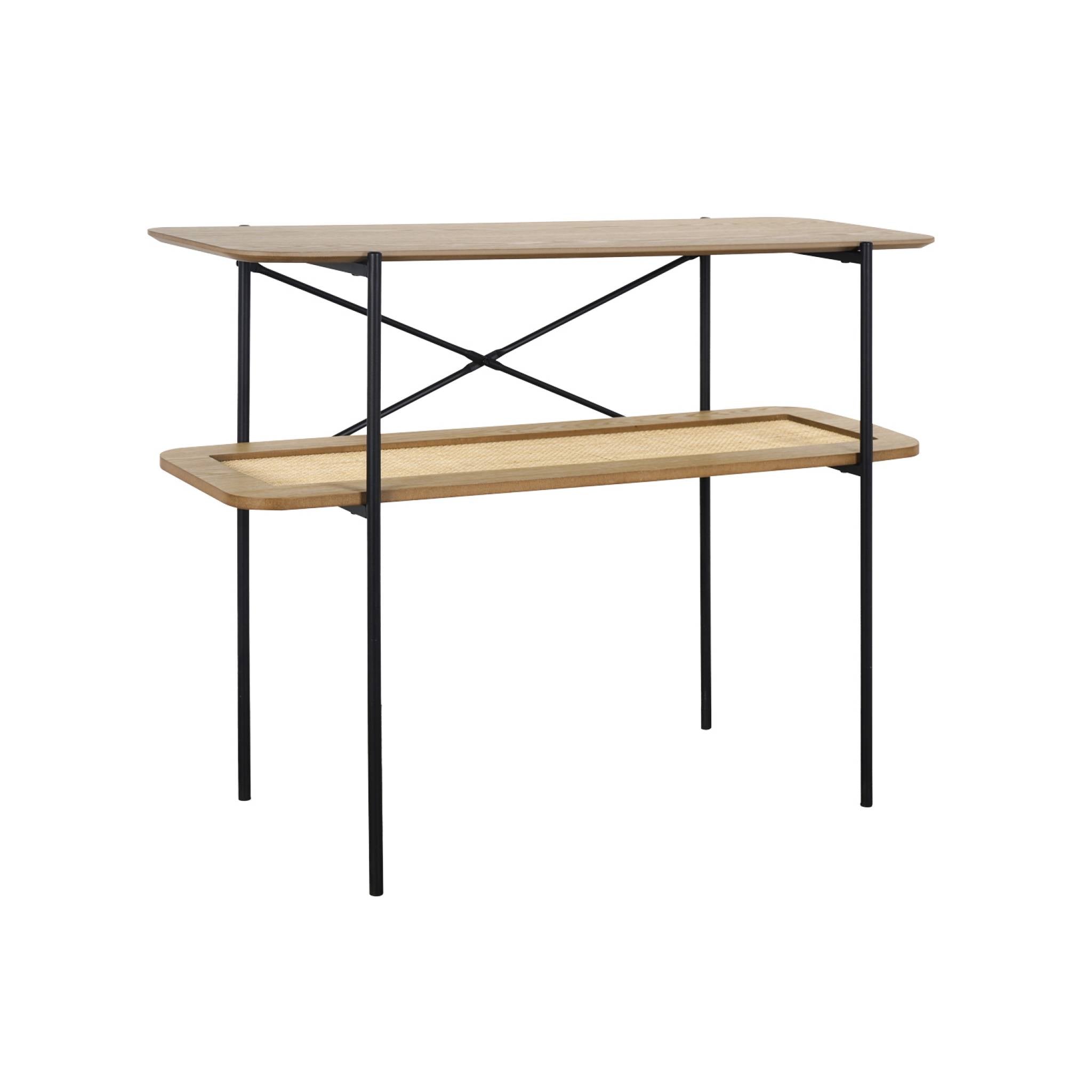 sweeek - Bijzettafel vintage met effect hout en vlechtwerk, dubbele