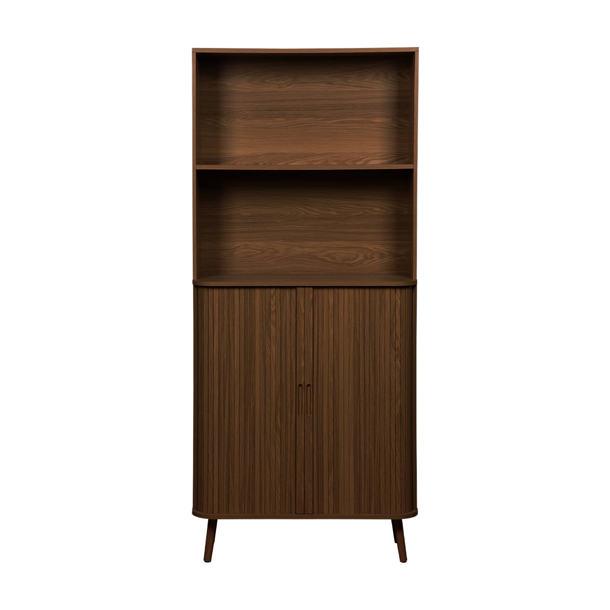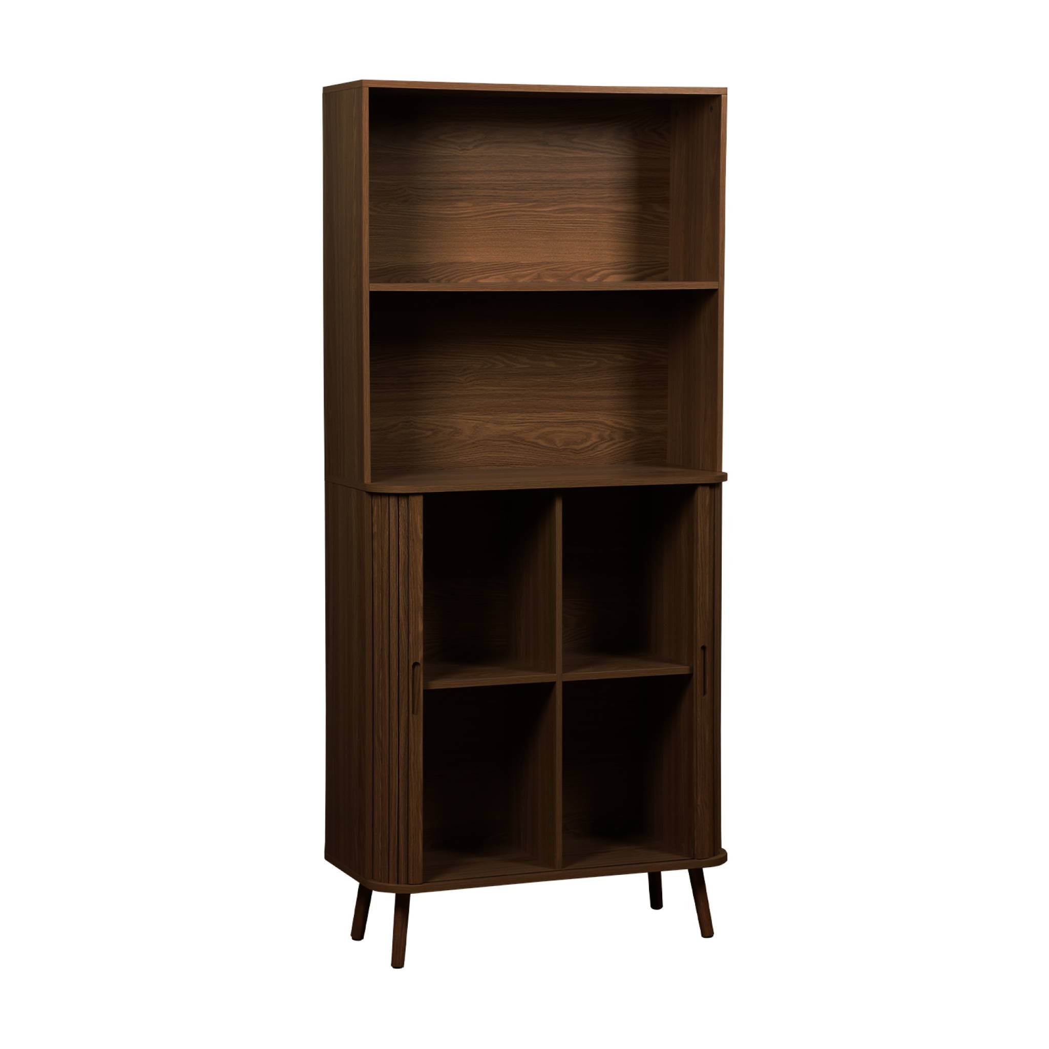 sweeek - Boekenkast gegroefd houteffect 2 schuifdeuren 4 niveaus