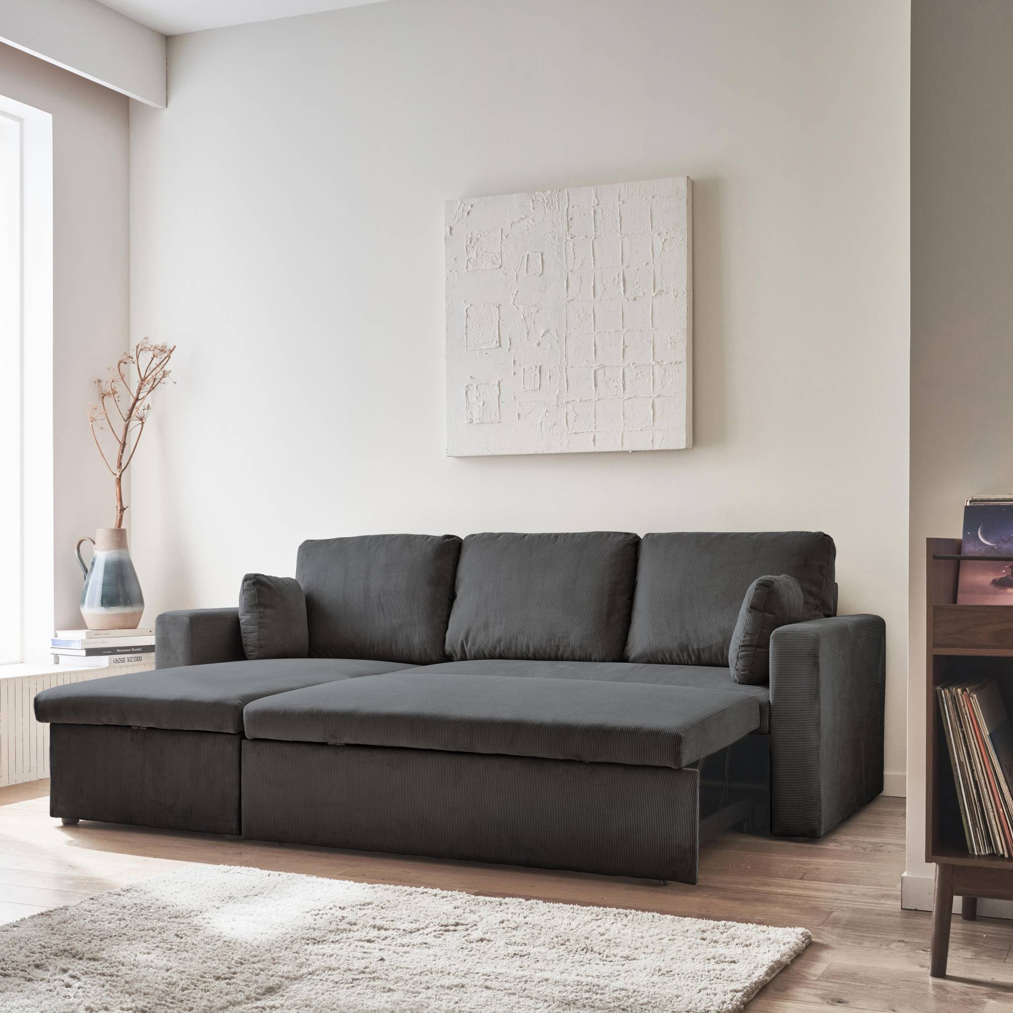 sweeek - Corduroy hoekslaapbank, 3-zits