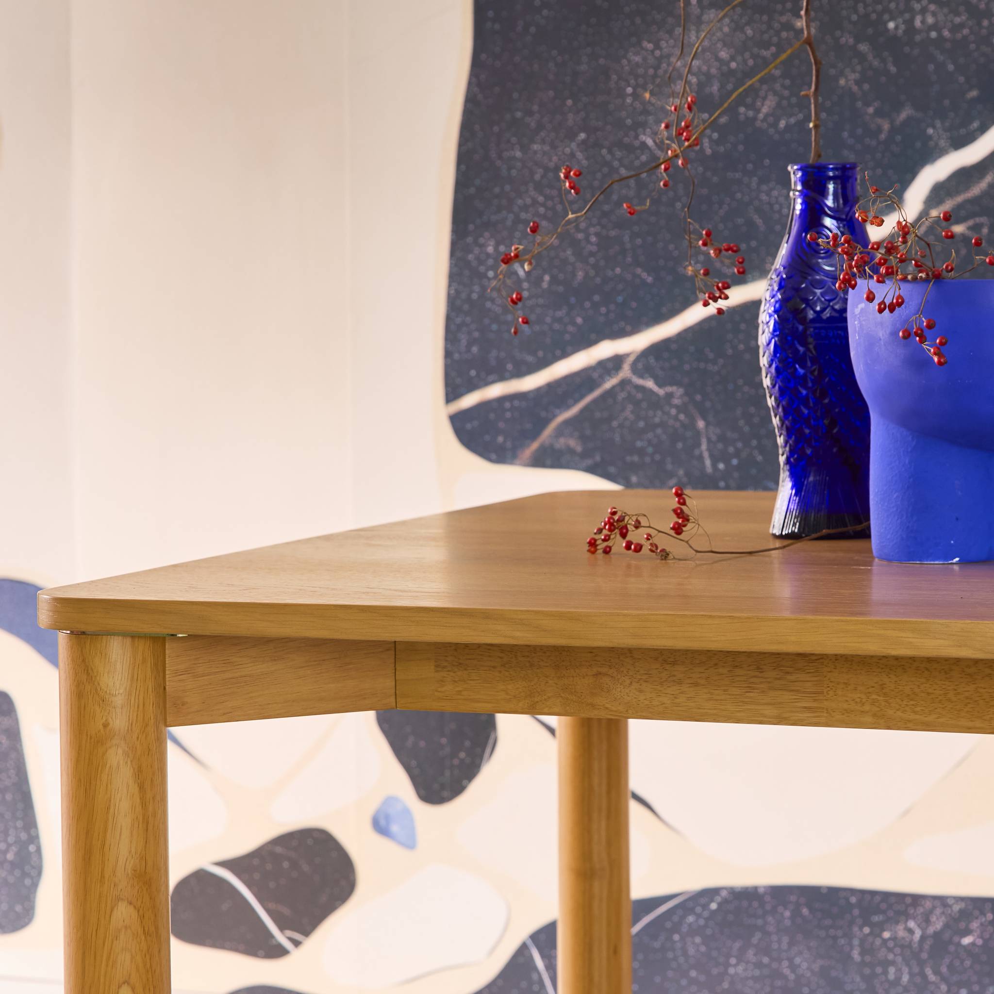 sweeek - Eettafel rubberhout en eikenfineer rechthoekig 6 plaatsen