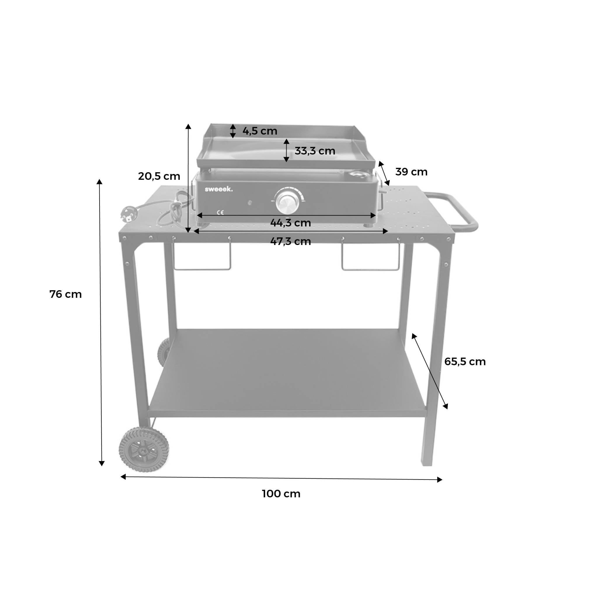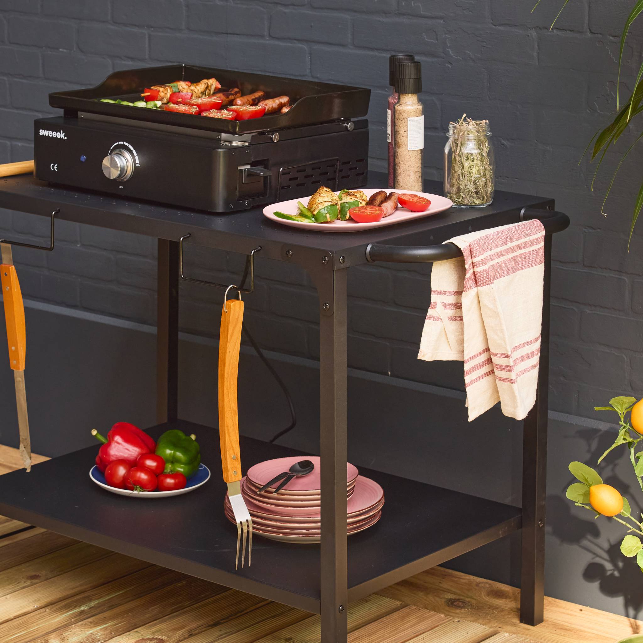sweeek - Elektrische kookplaat, 1 brander met keukentrolley,