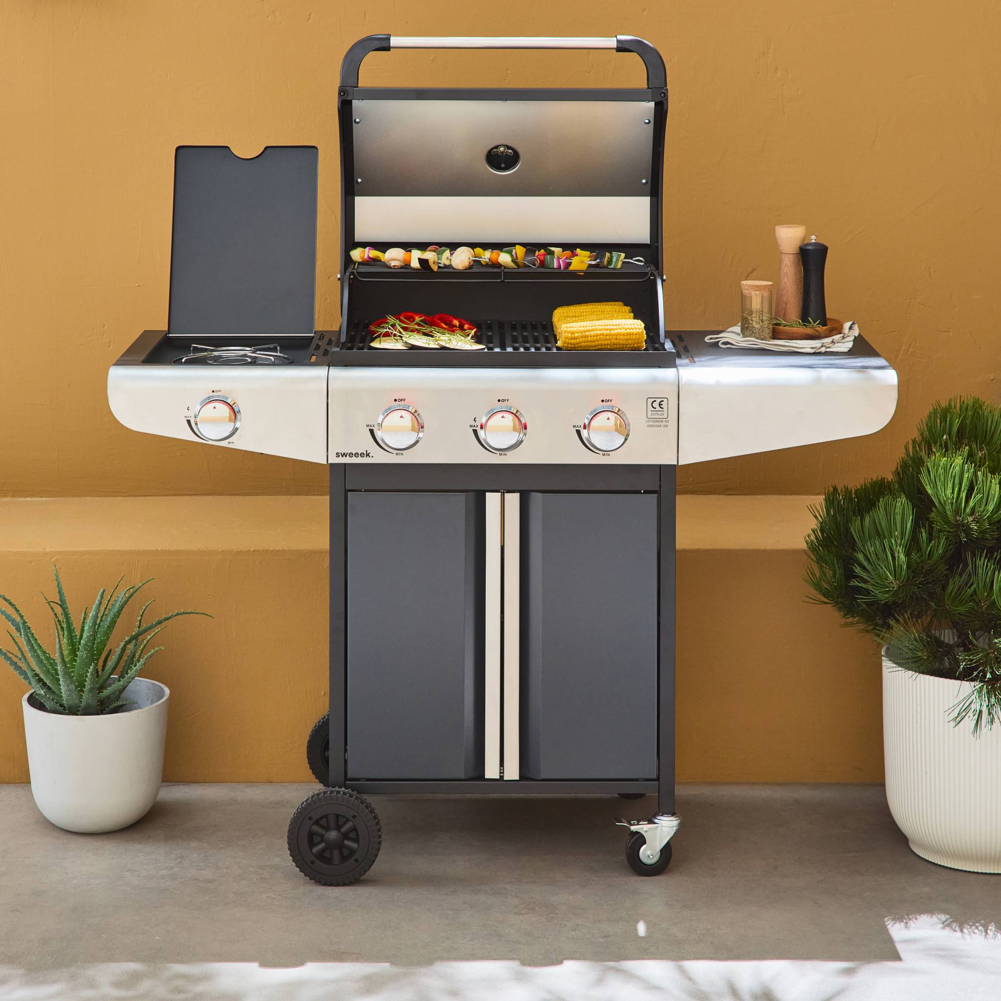 - 3 branders + 1 zijbrander