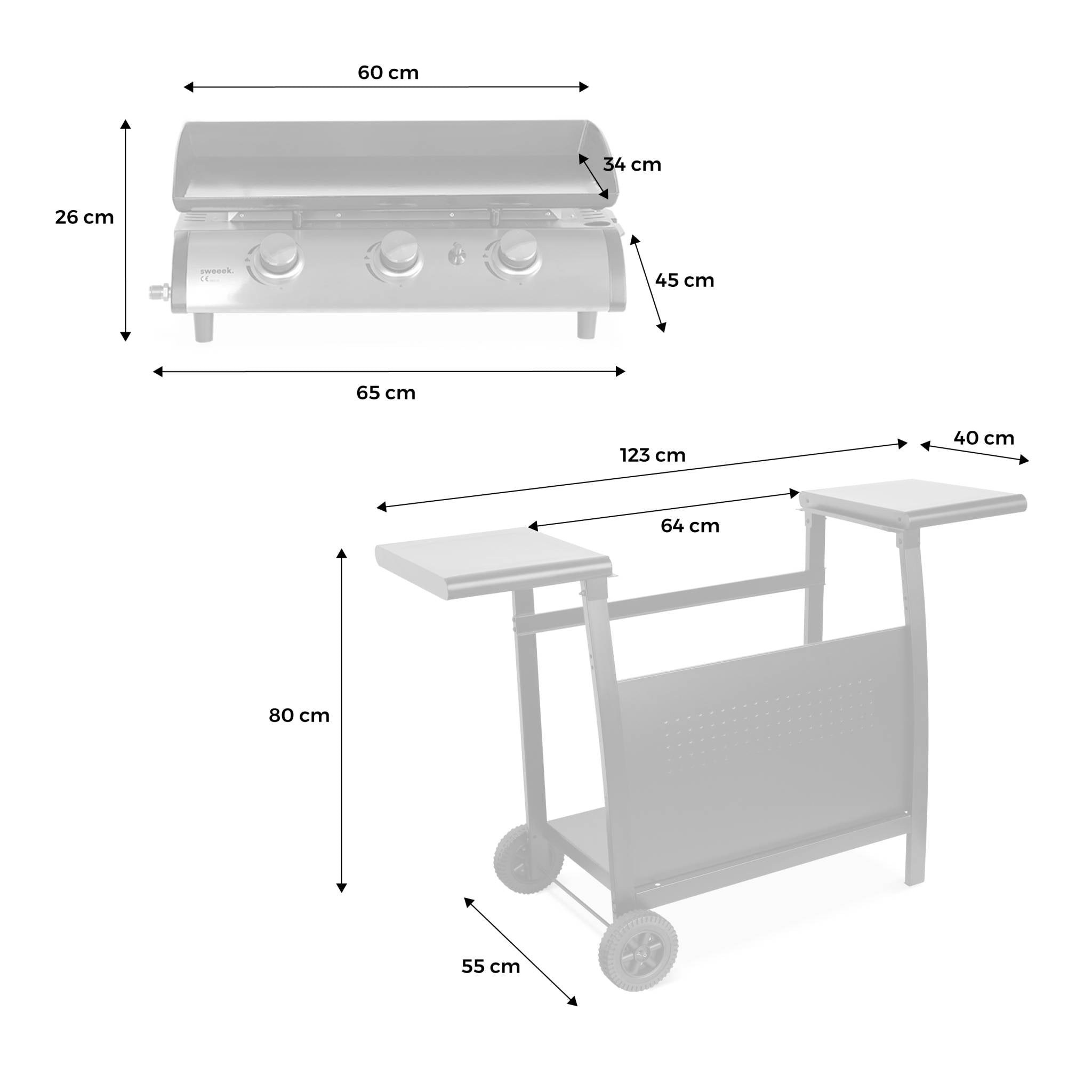 sweeek - Gasplancha 3 branders inox 7,5kW met karretje