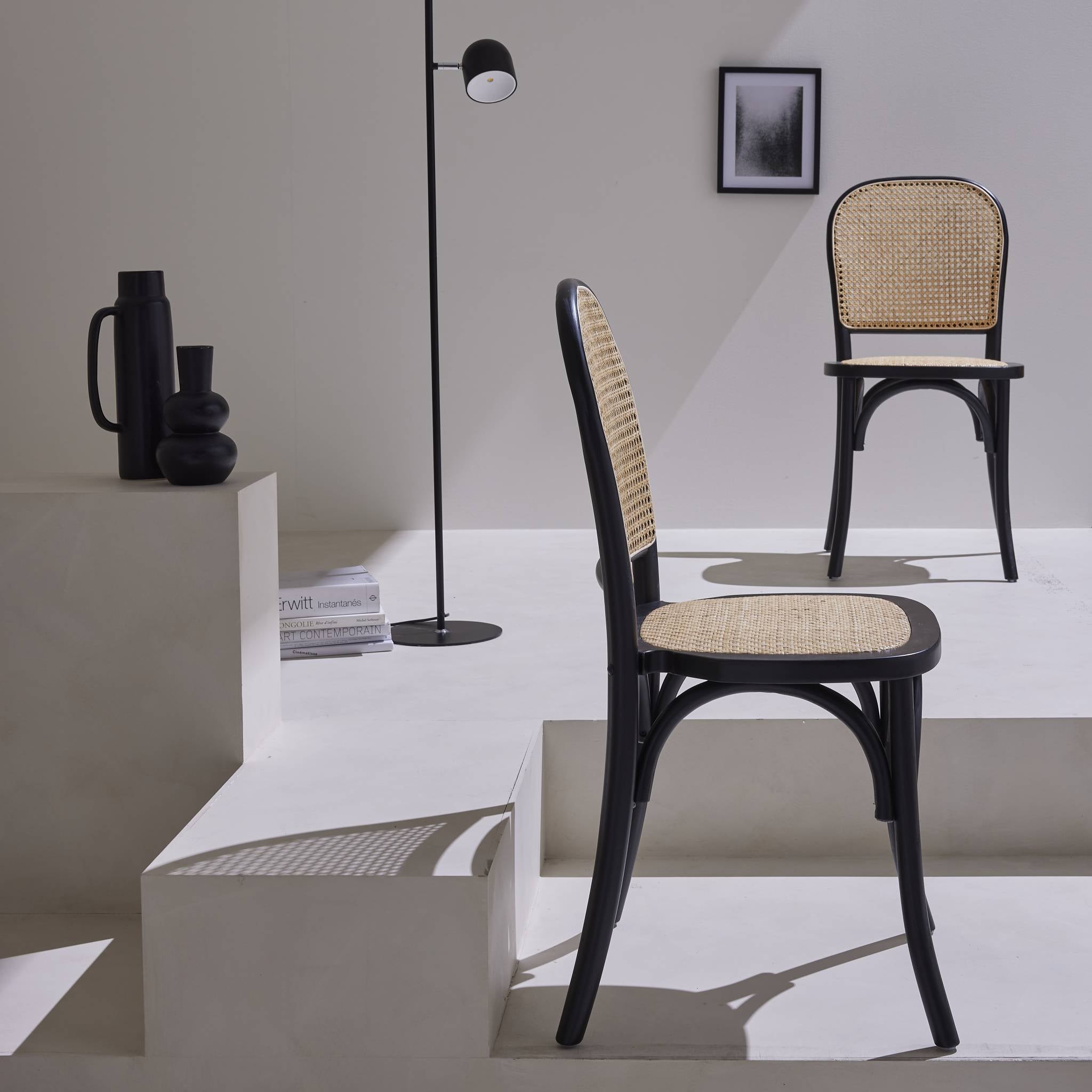 sweeek - Houten en rotan vintage stoelen (set van 2)
