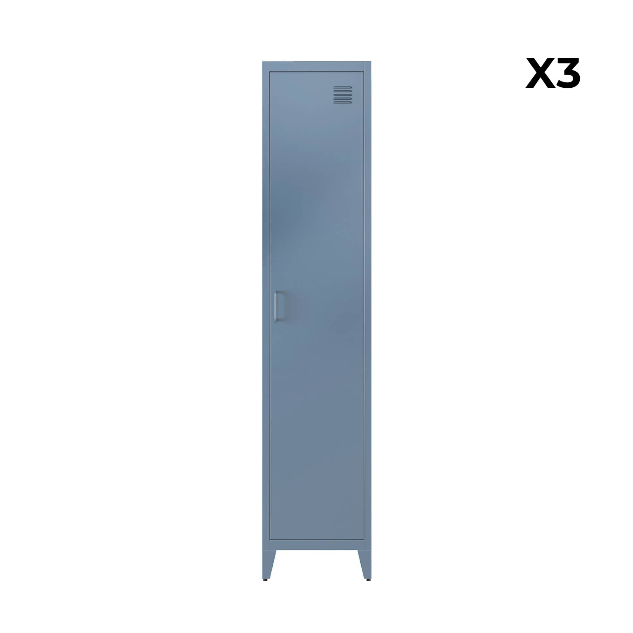 sweeek - Industriële metalen kast 4 vakken 1 deur (set van 3)