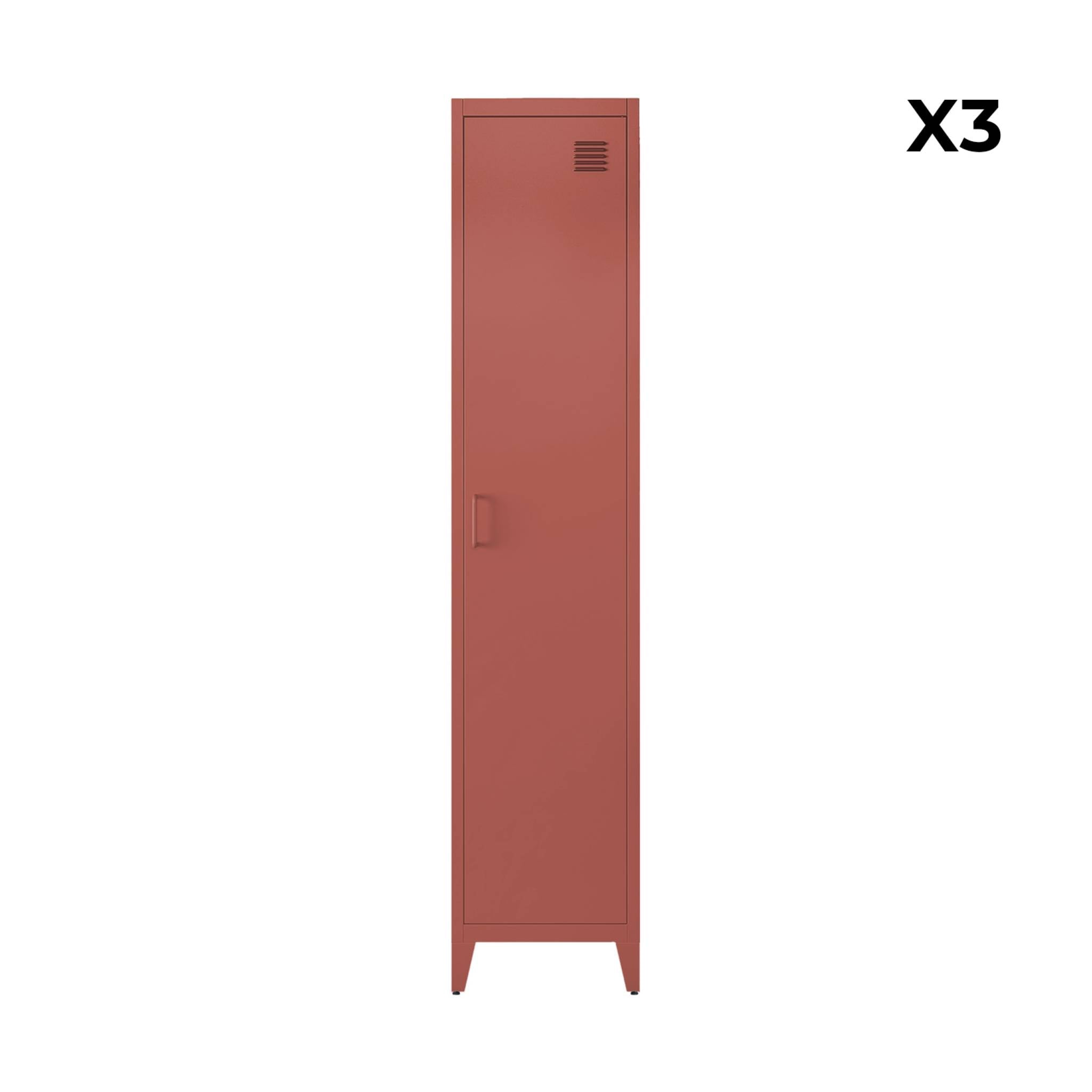 sweeek - Industriële metalen kast 4 vakken 1 deur (set van 3)