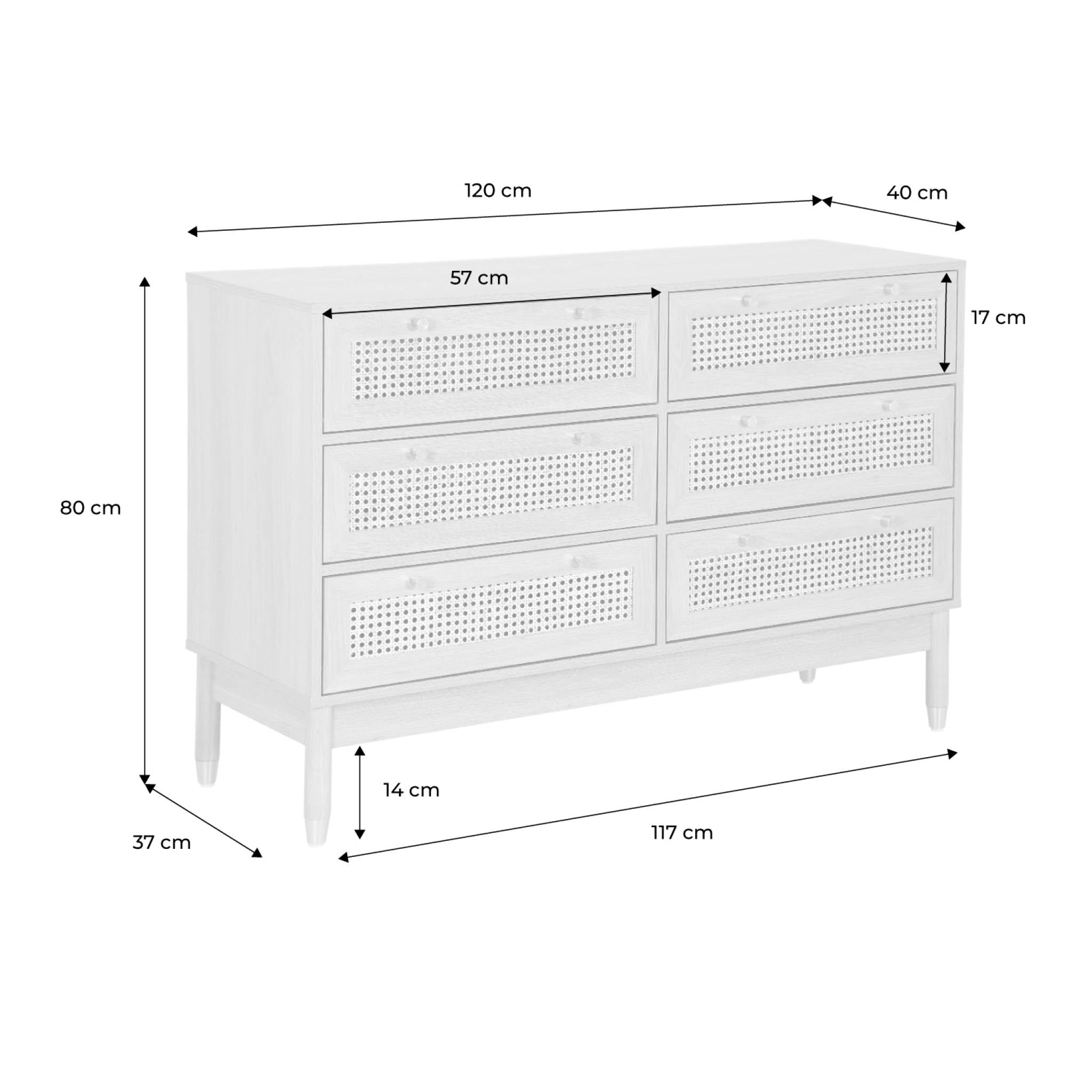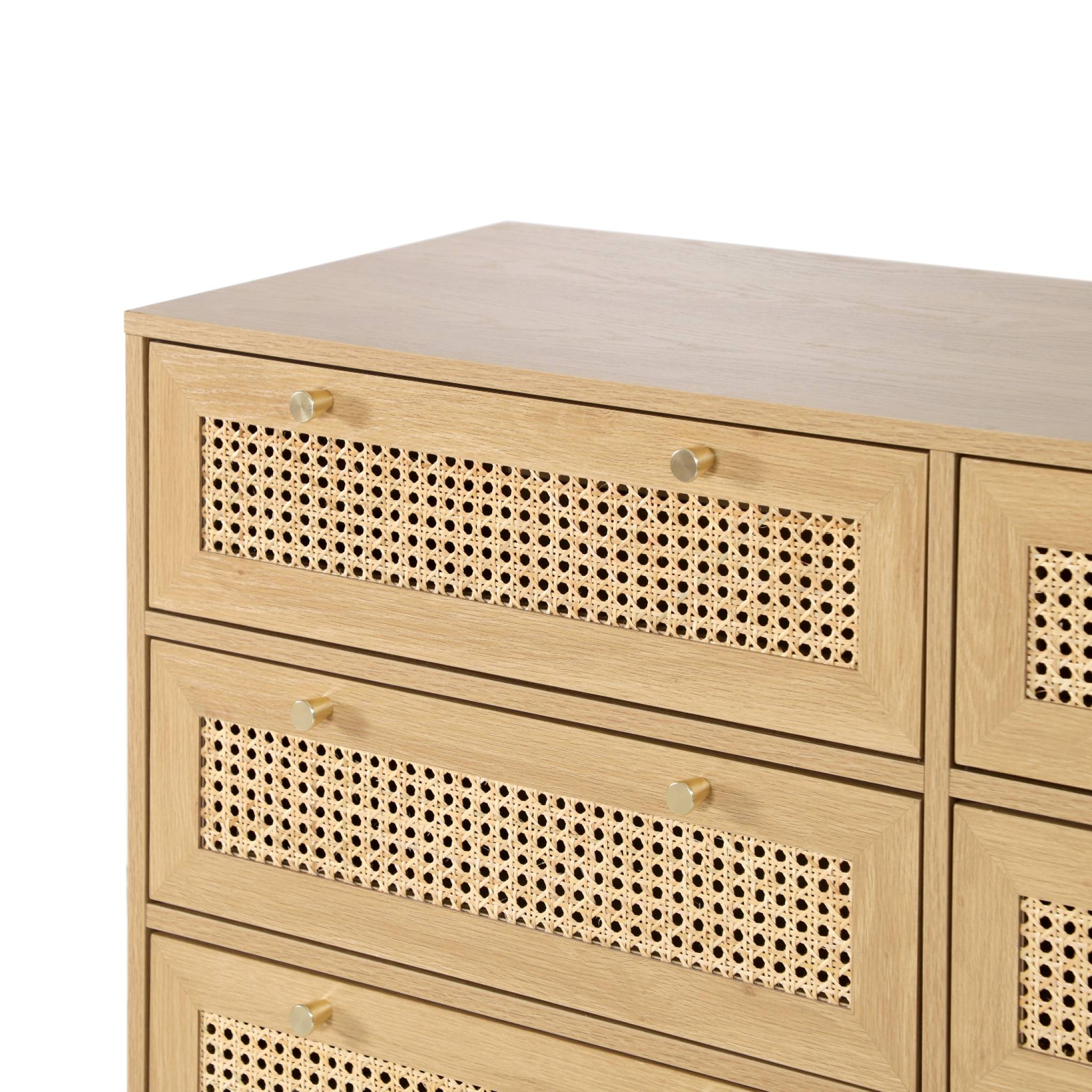 sweeek - Ladekast dressoir houteffect en vlechtwerk 6 laden