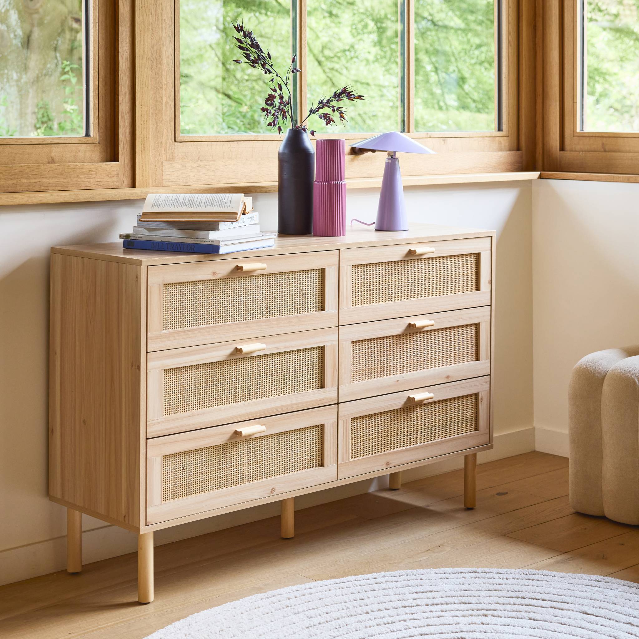 - Handgrepen en poten van dennenhout