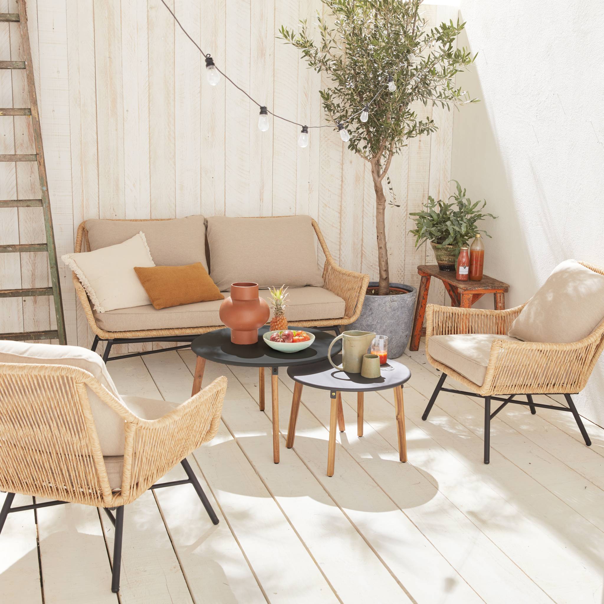 sweeek - Lage wicker loungeset 4 plaatsen - Kuta