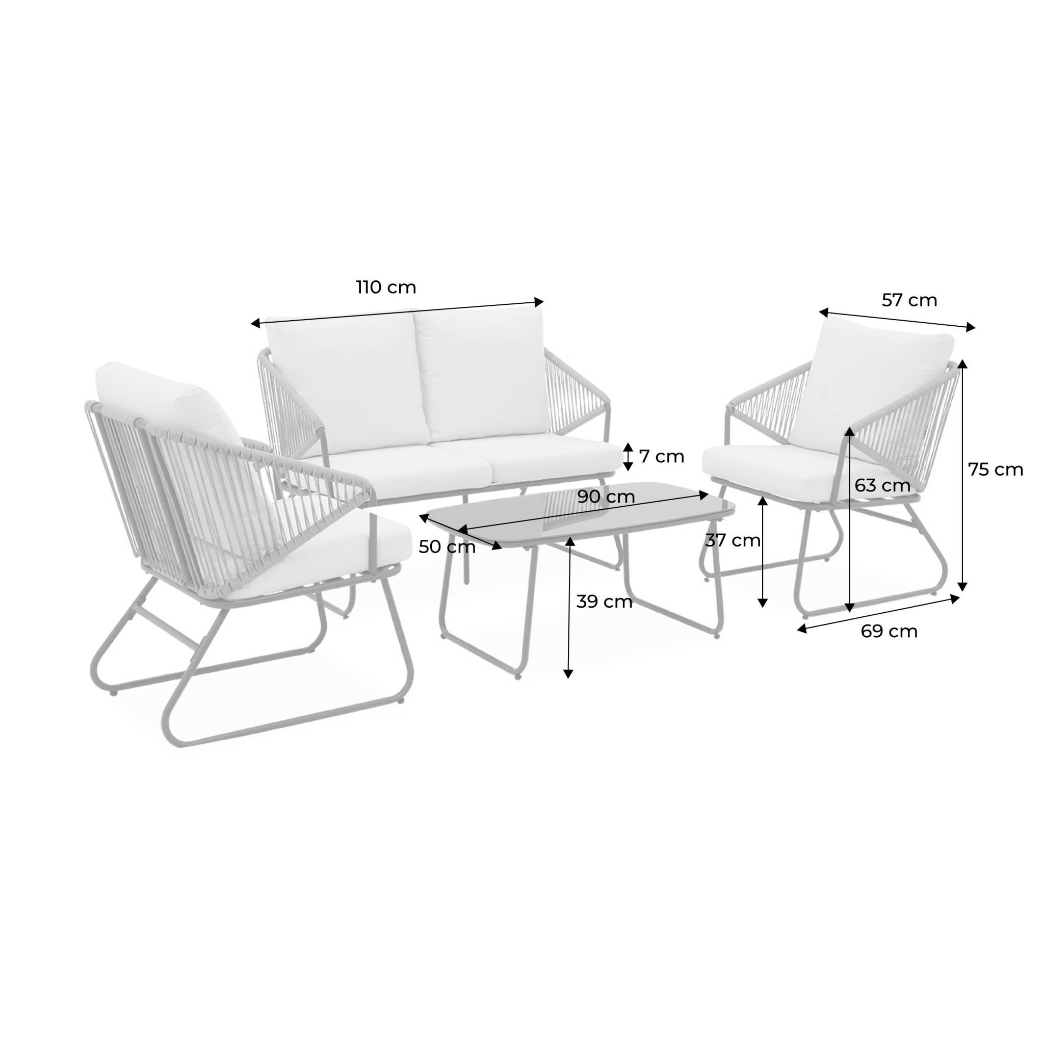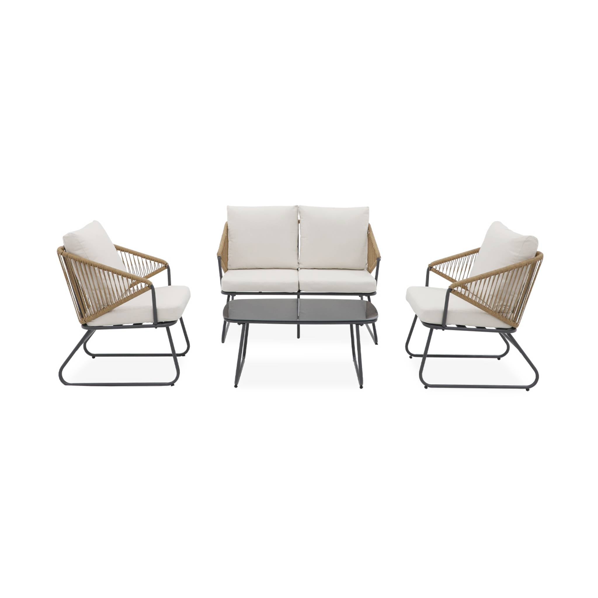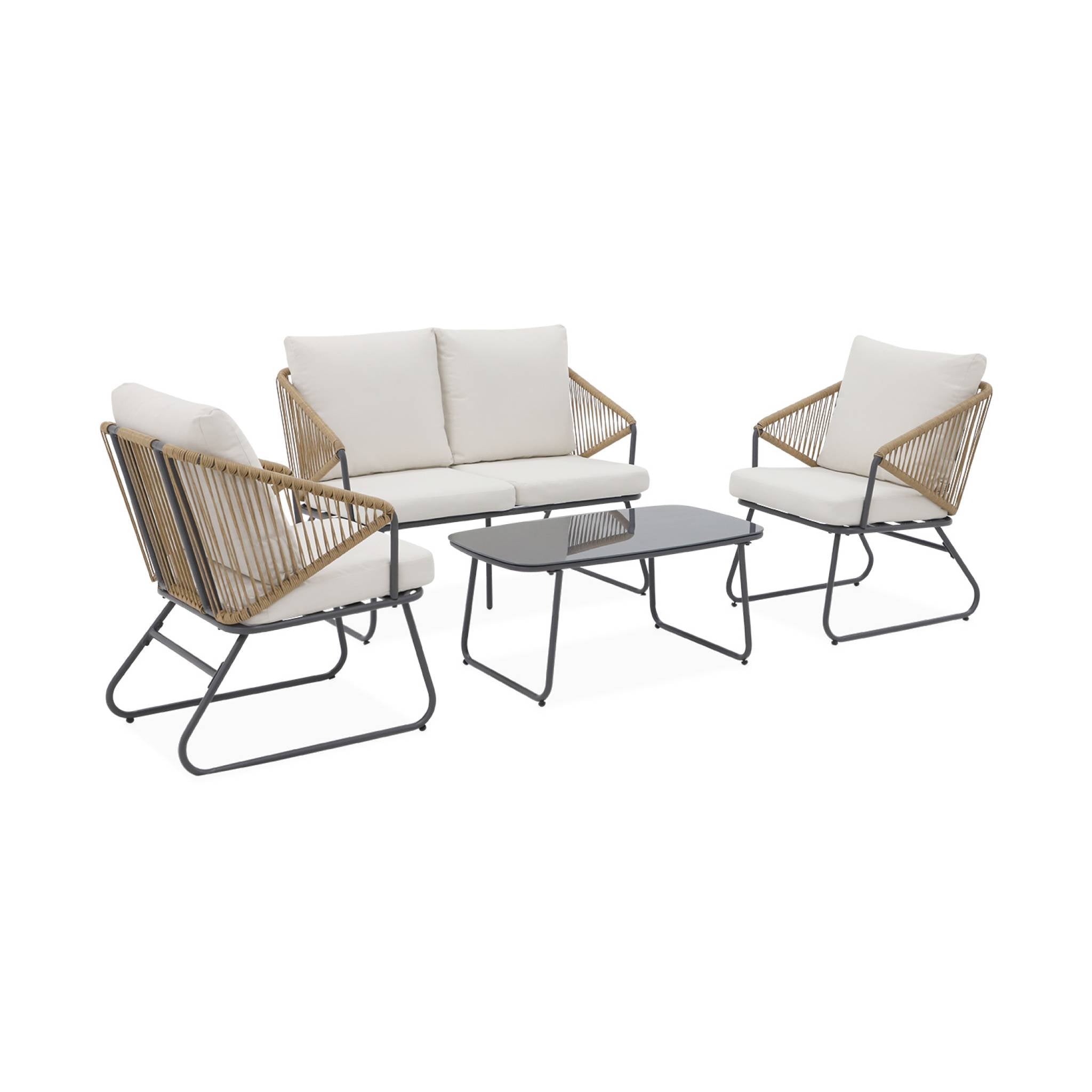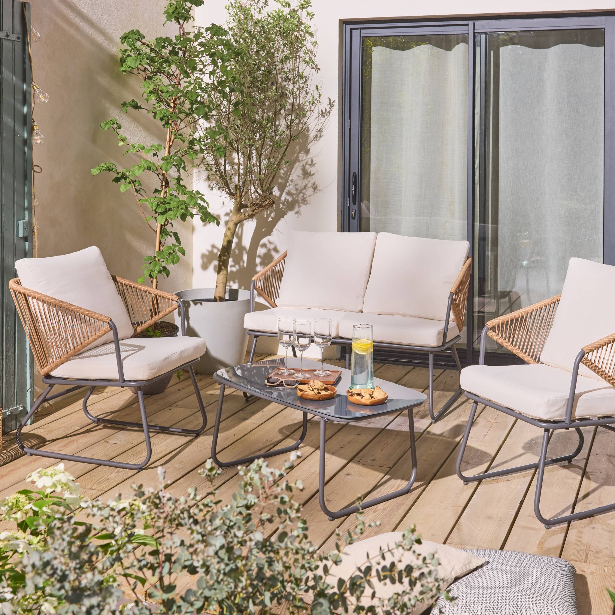 sweeek - Loungeset van metaal en natuurlijk hars, 4 zits