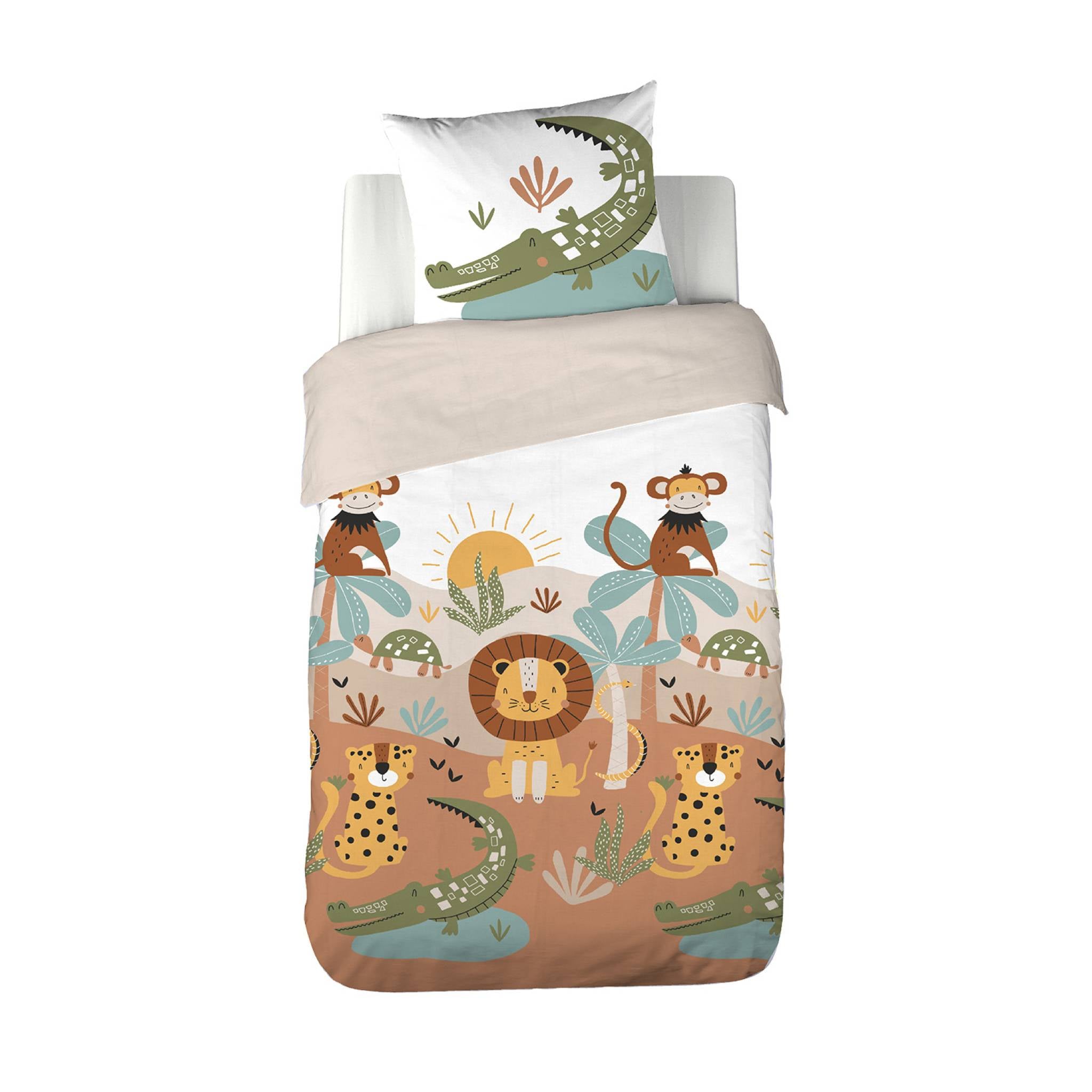 sweeek - Microvezel dekbedovertrek omkeerbaar bedrukt savanne 1 plaats