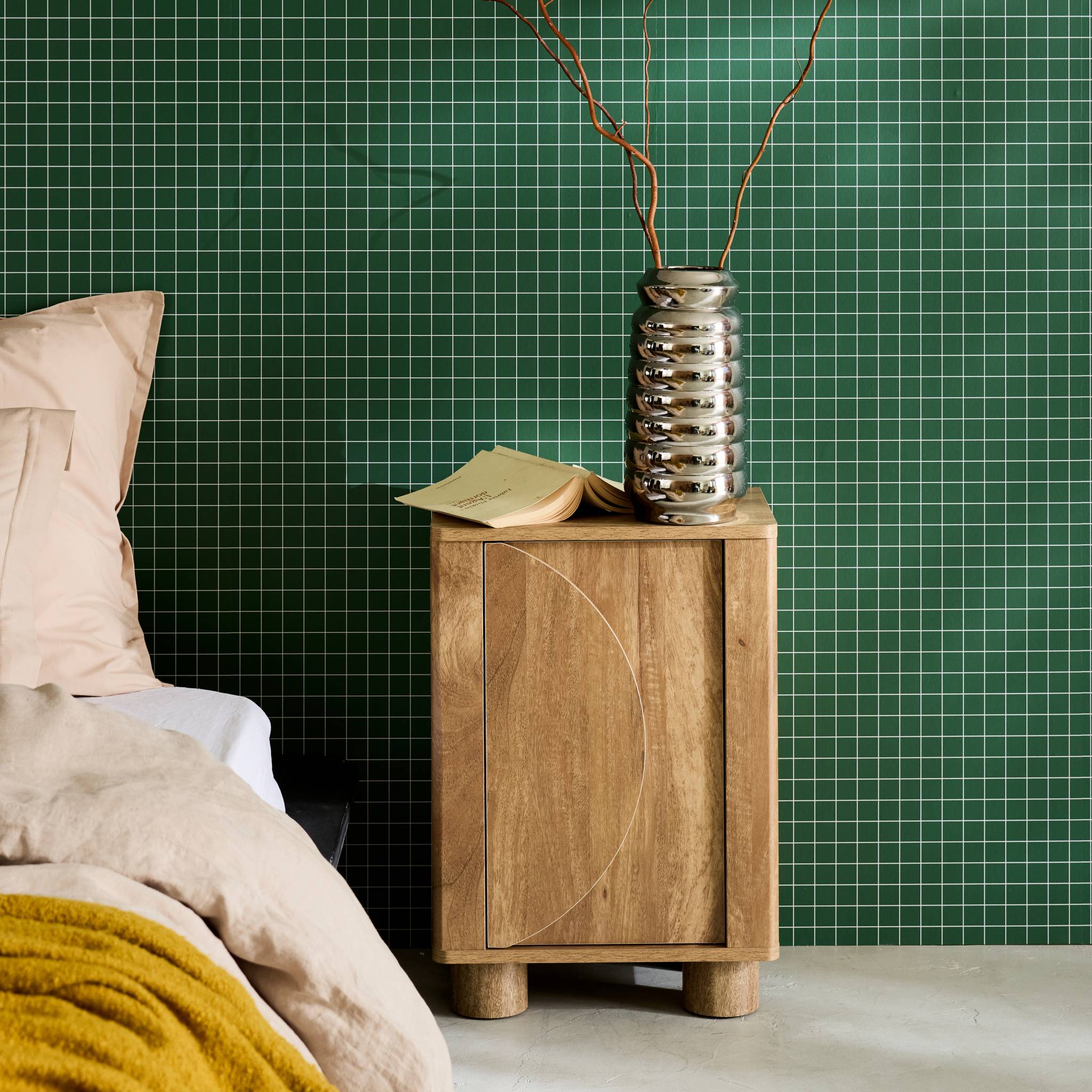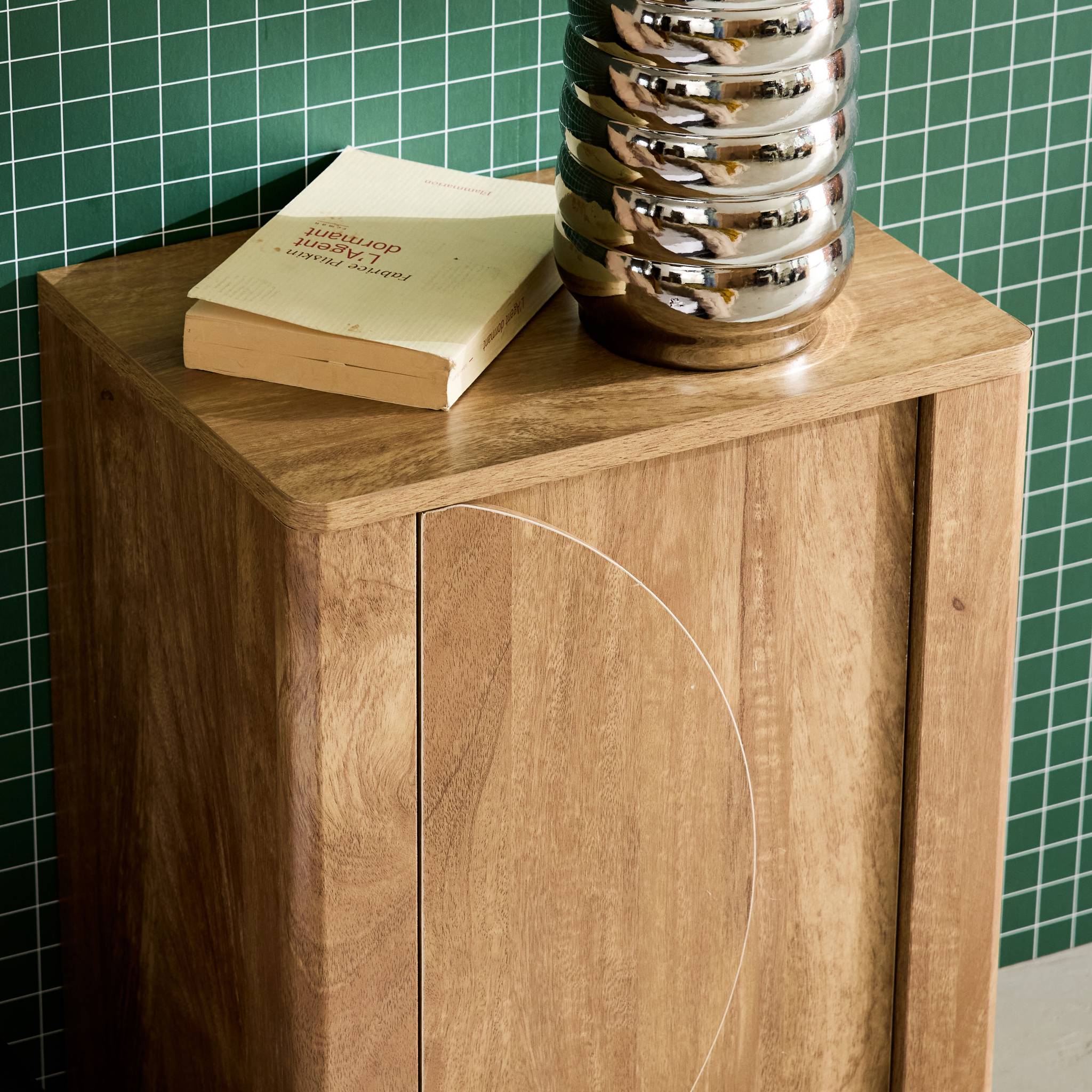 sweeek - Nachtkastje effect mangohout 1 omkeerbare deur (set van 2)