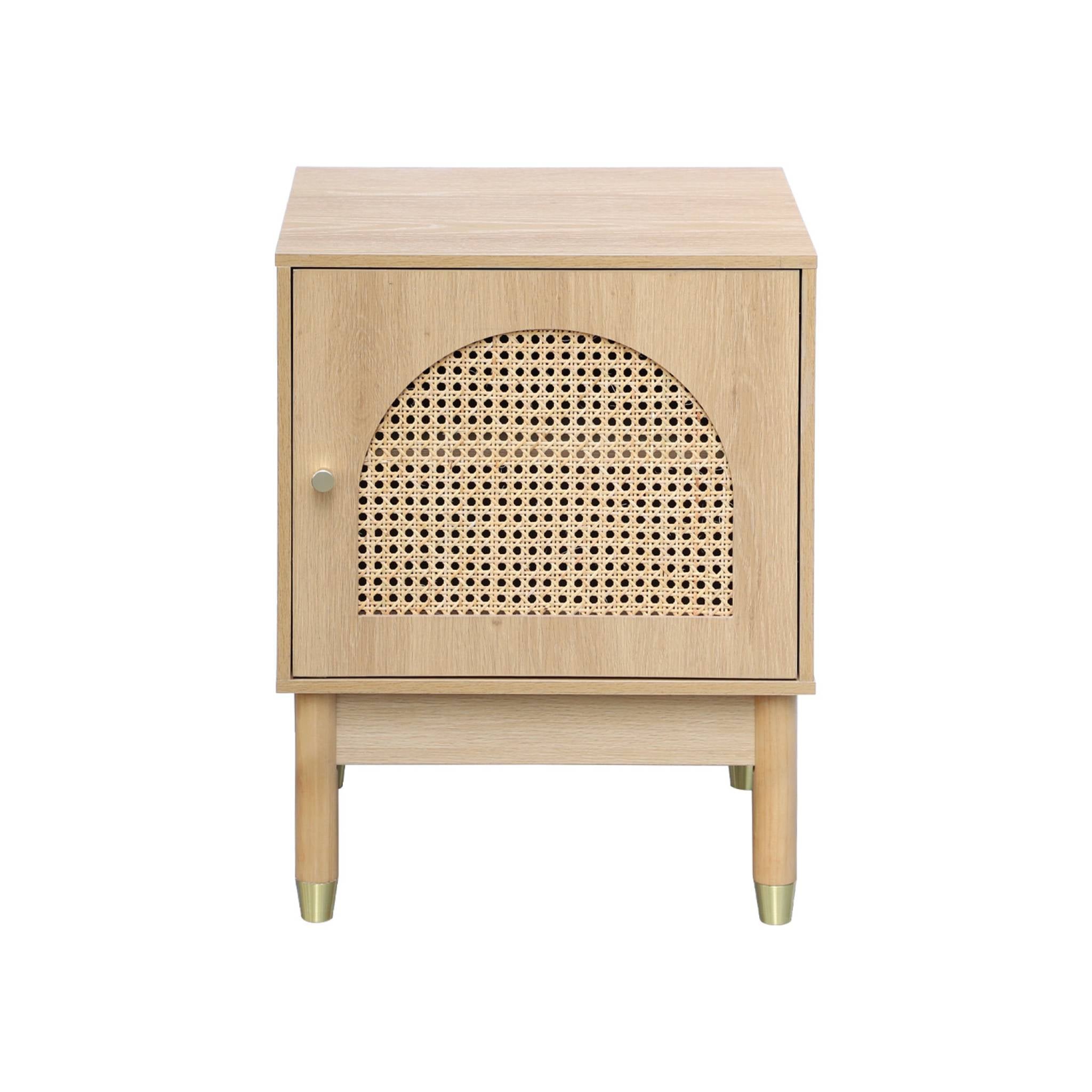 sweeek - Nachtkastje houteffect en vlechtwerk 1 deur