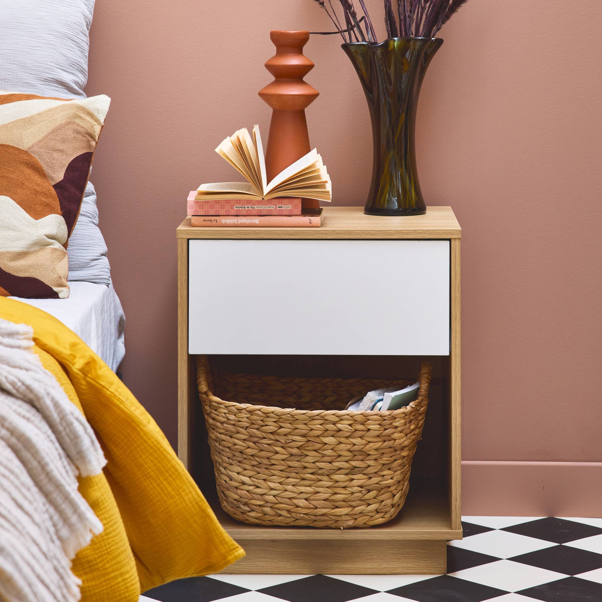 sweeek - Nachtkastje met 1 lade en 1 nis in tweekleurig houteffect
