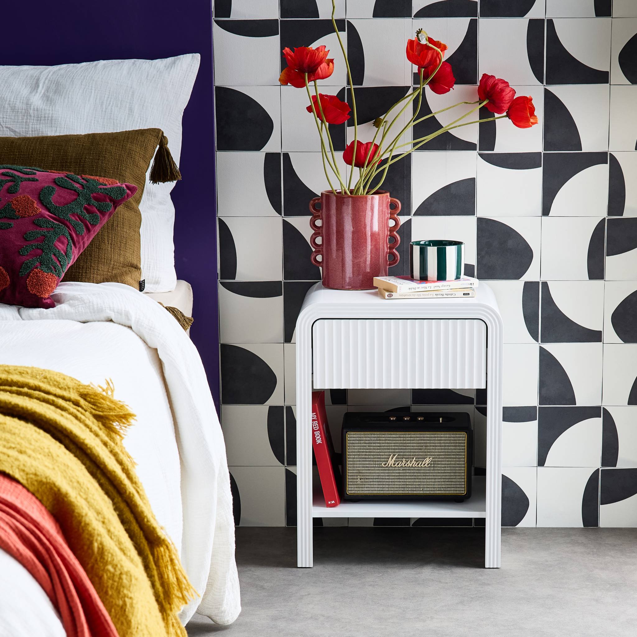 sweeek - Nachtkastje met gegroefd houteffect, 1 lade, 1 plank (set van