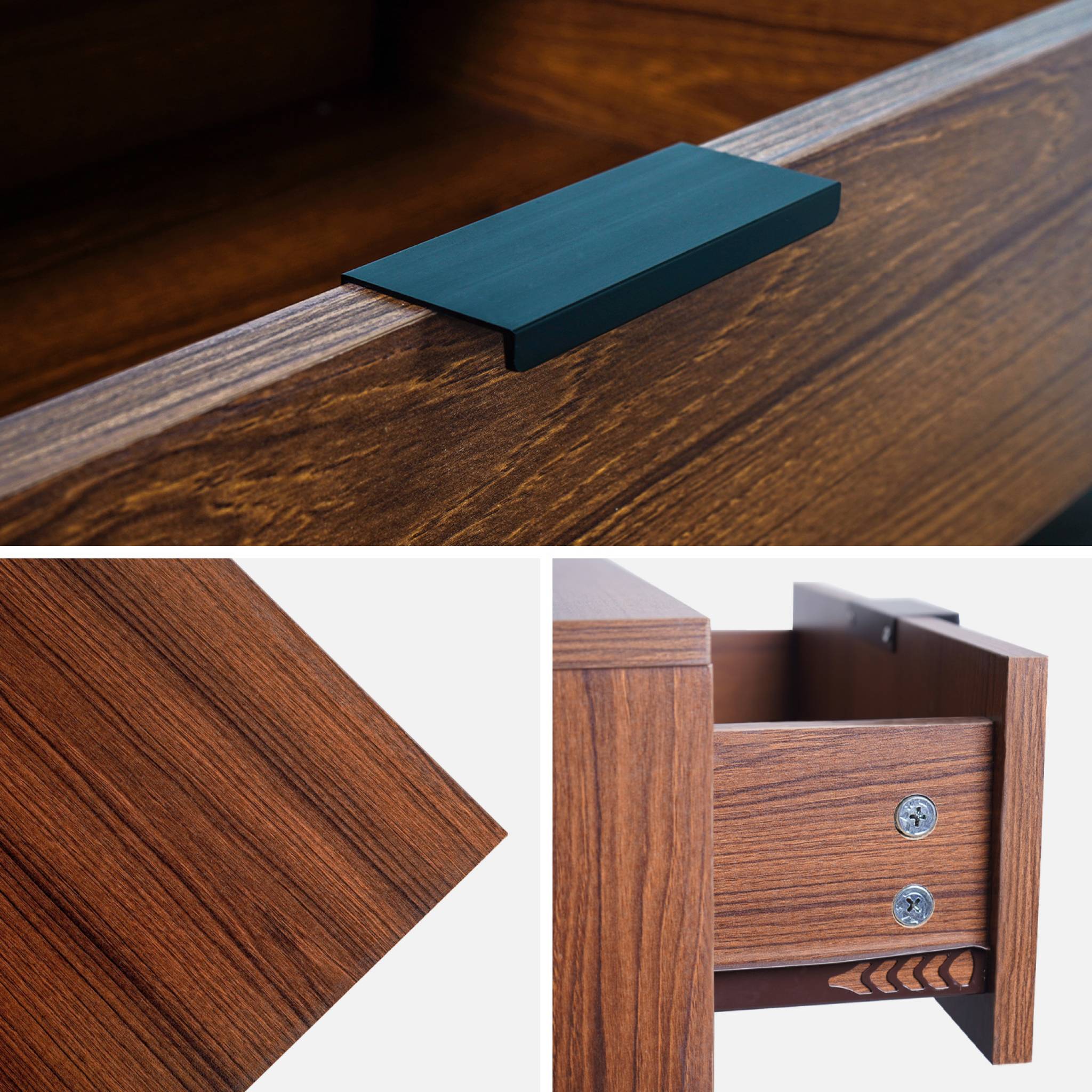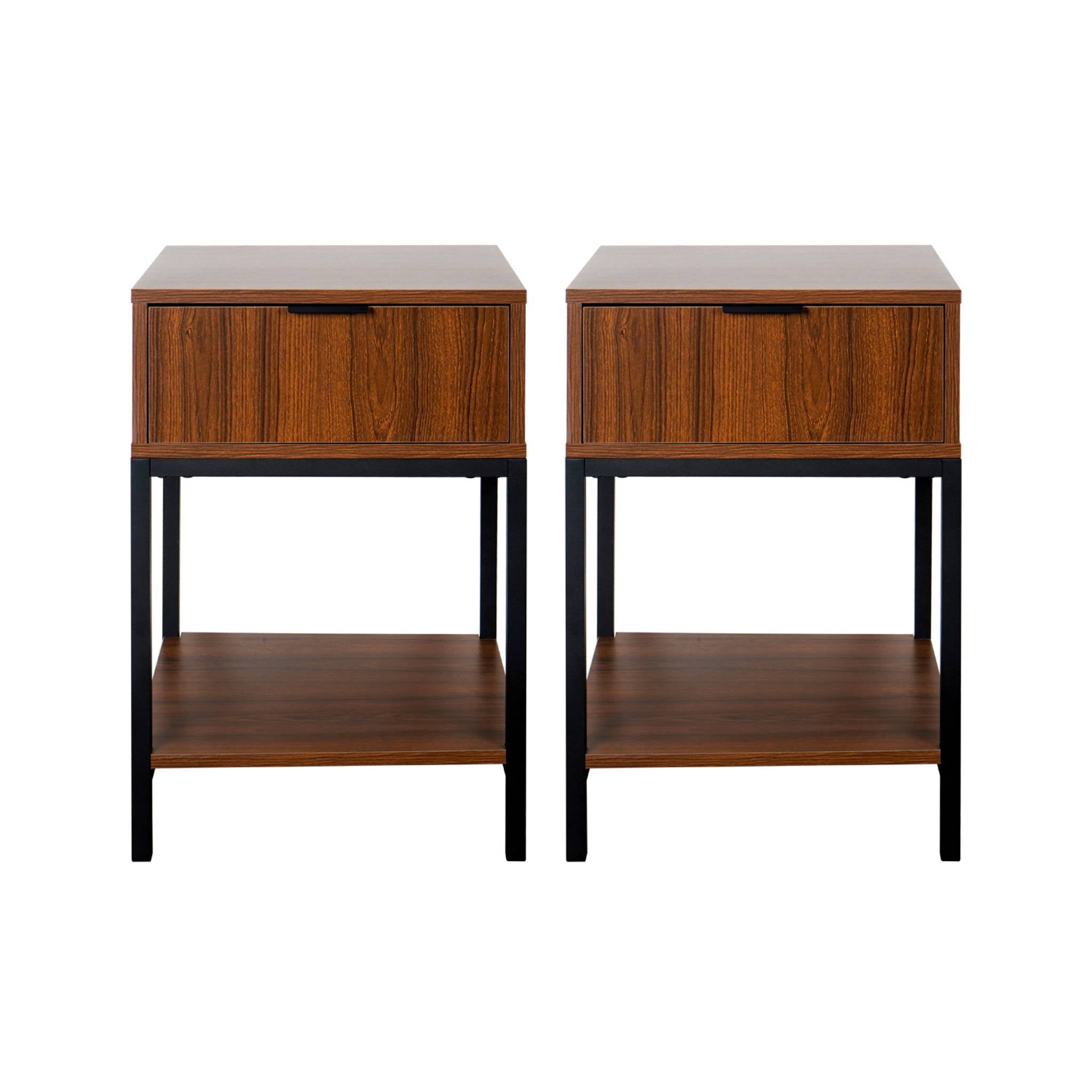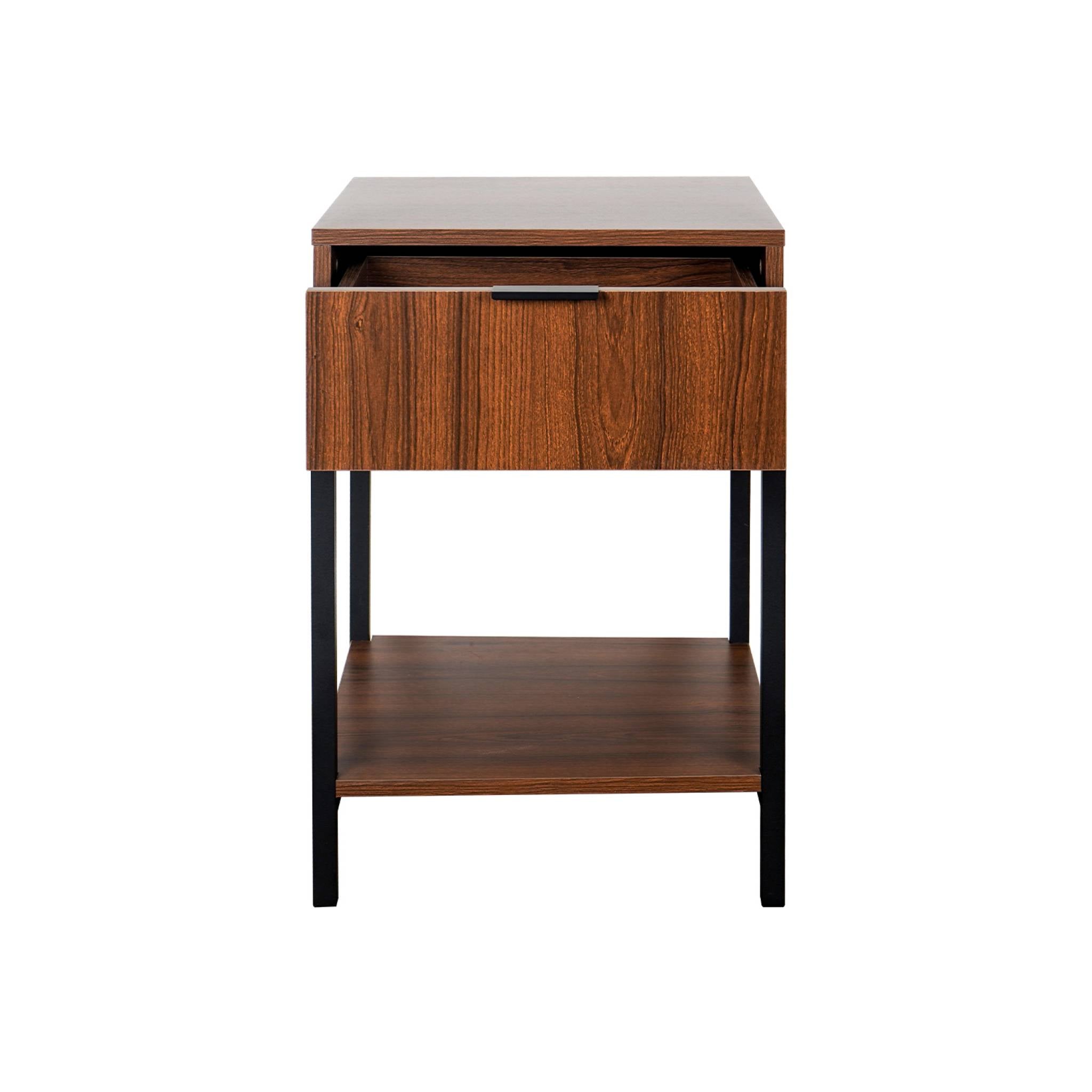 sweeek - Nachtkastje van walnootkleurig hout en zwart metaal, 1 lade