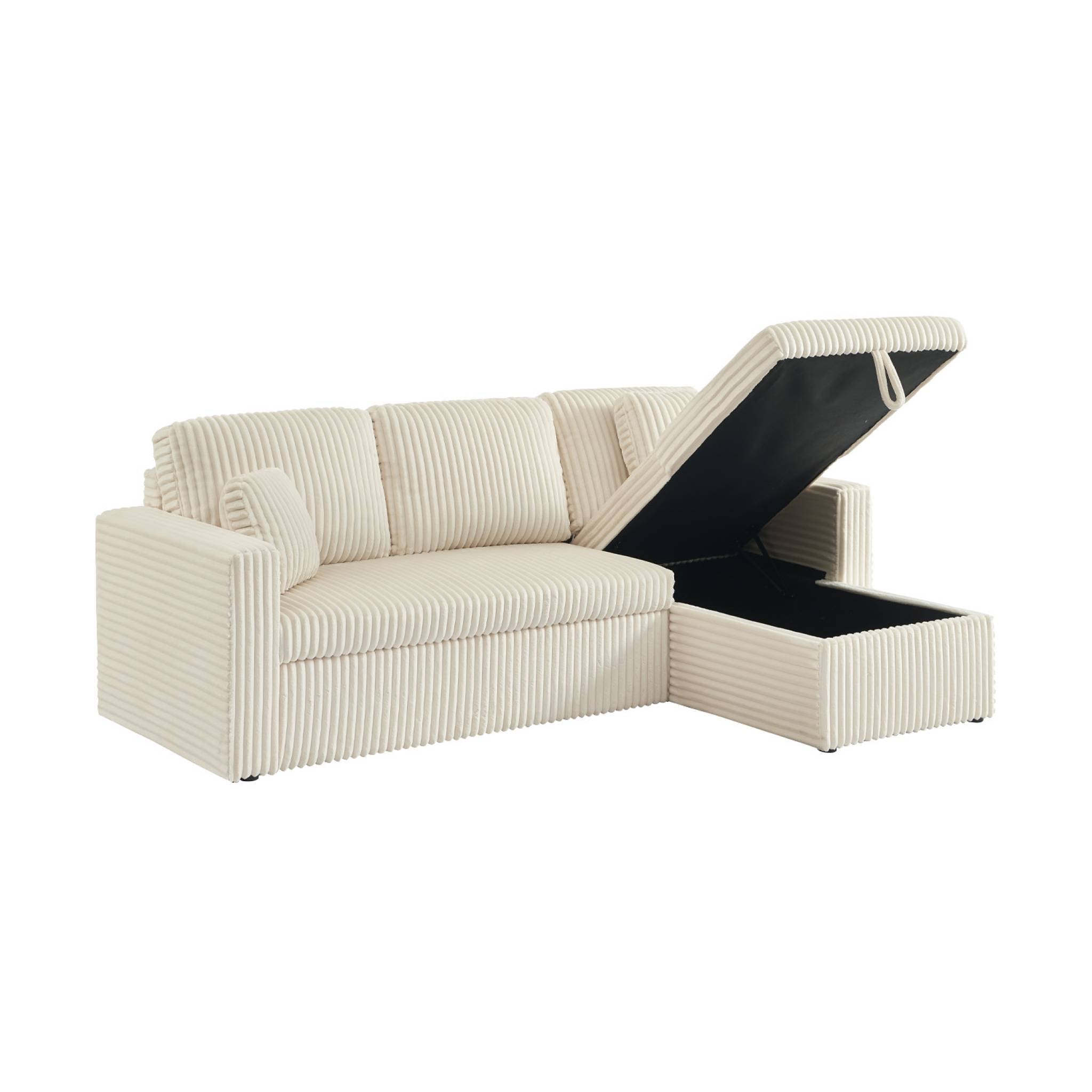 sweeek - Omkeerbare 3-zits slaaphoekbank met geribbelde bontlook