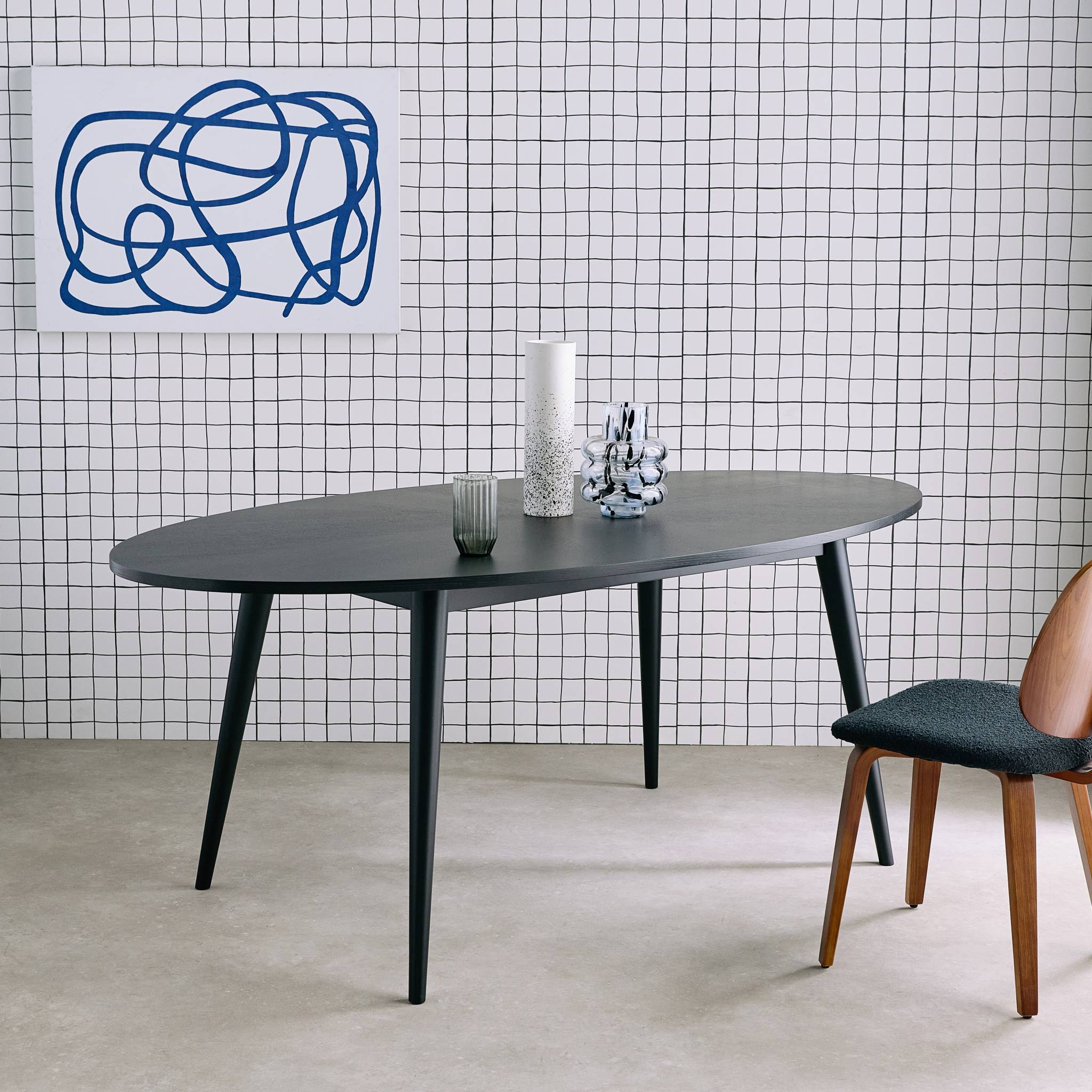 sweeek - Ovale eettafel van rubberhout en eikenfineer, 6 plaatsen