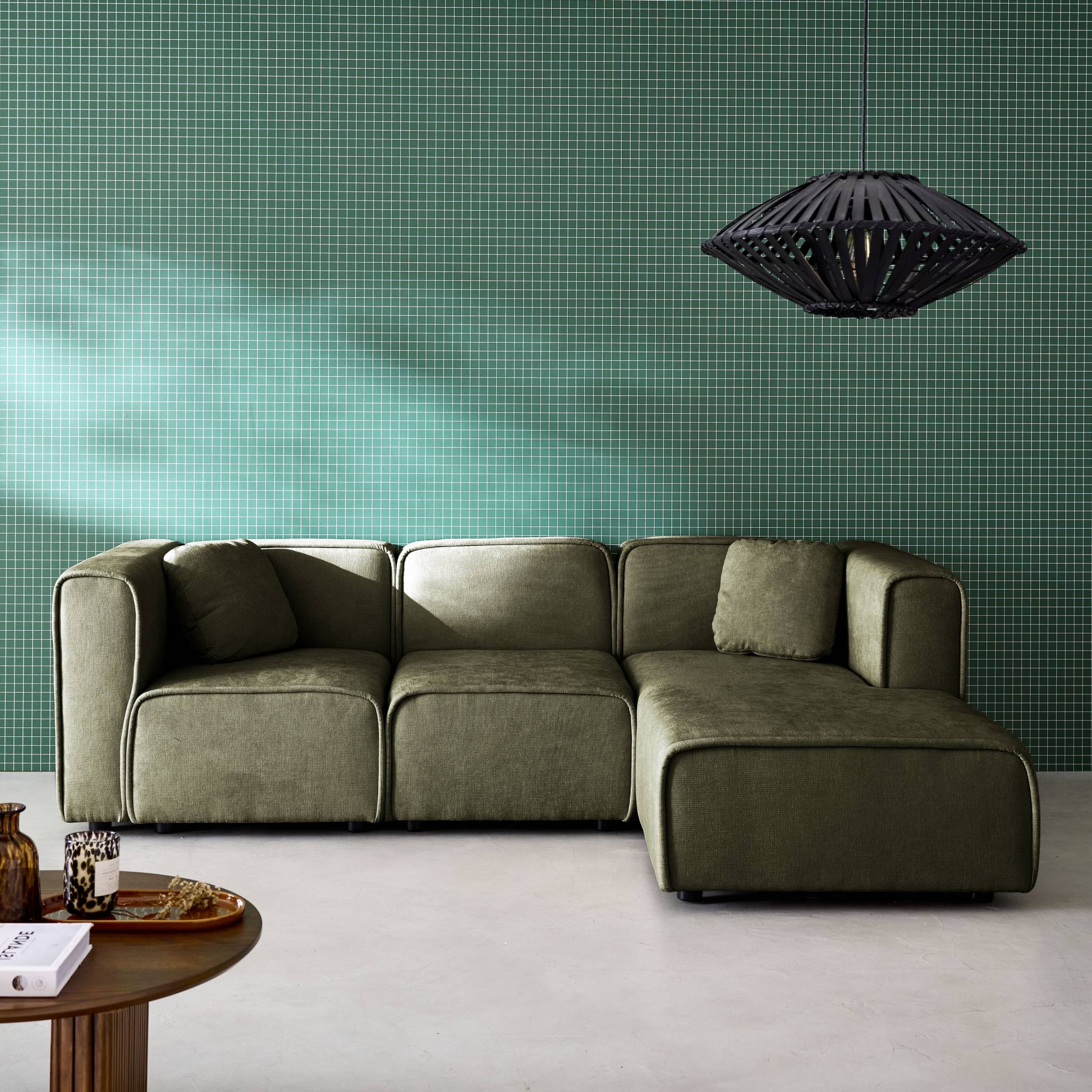 sweeek - Rechtse hoekbank 3 zitplaatsen stof