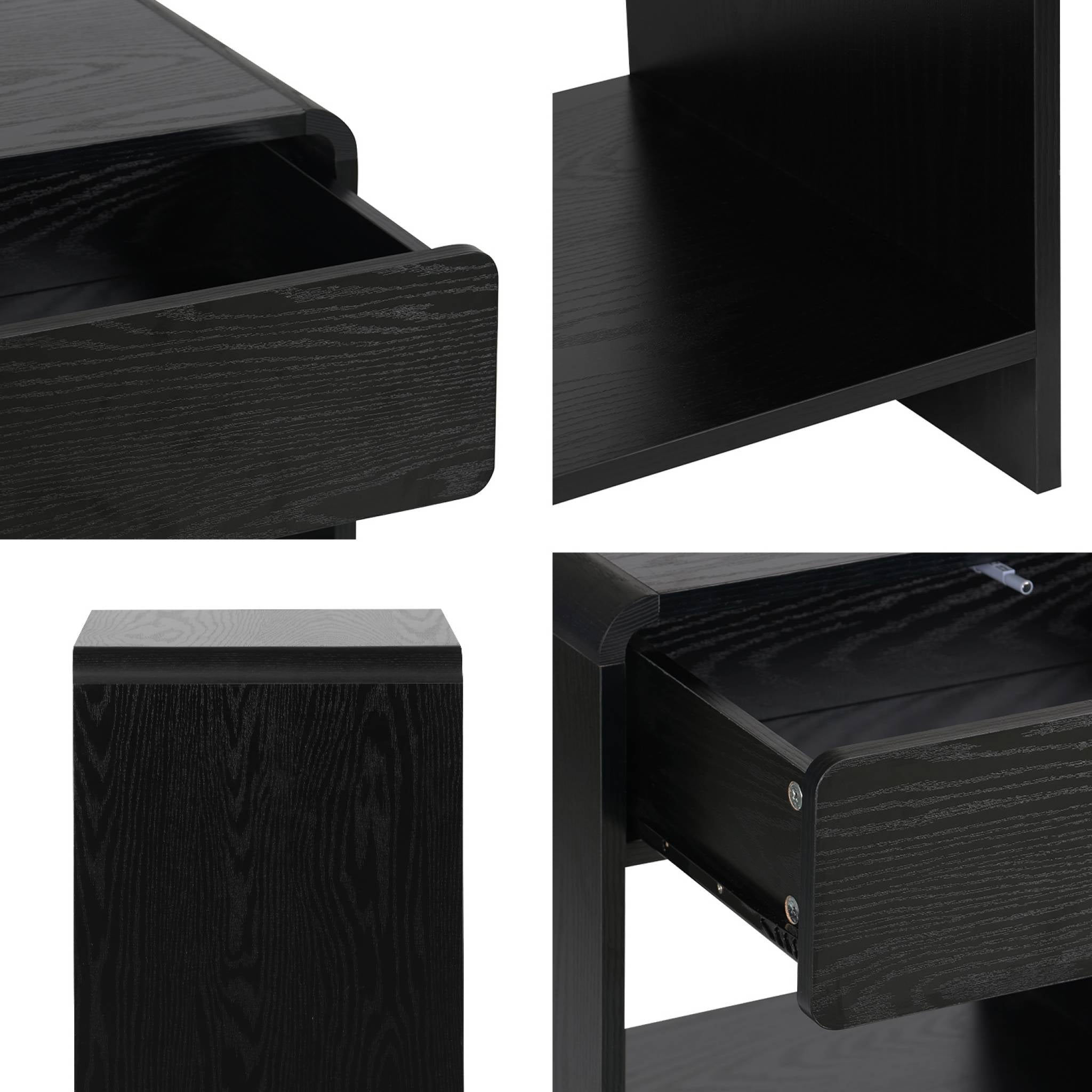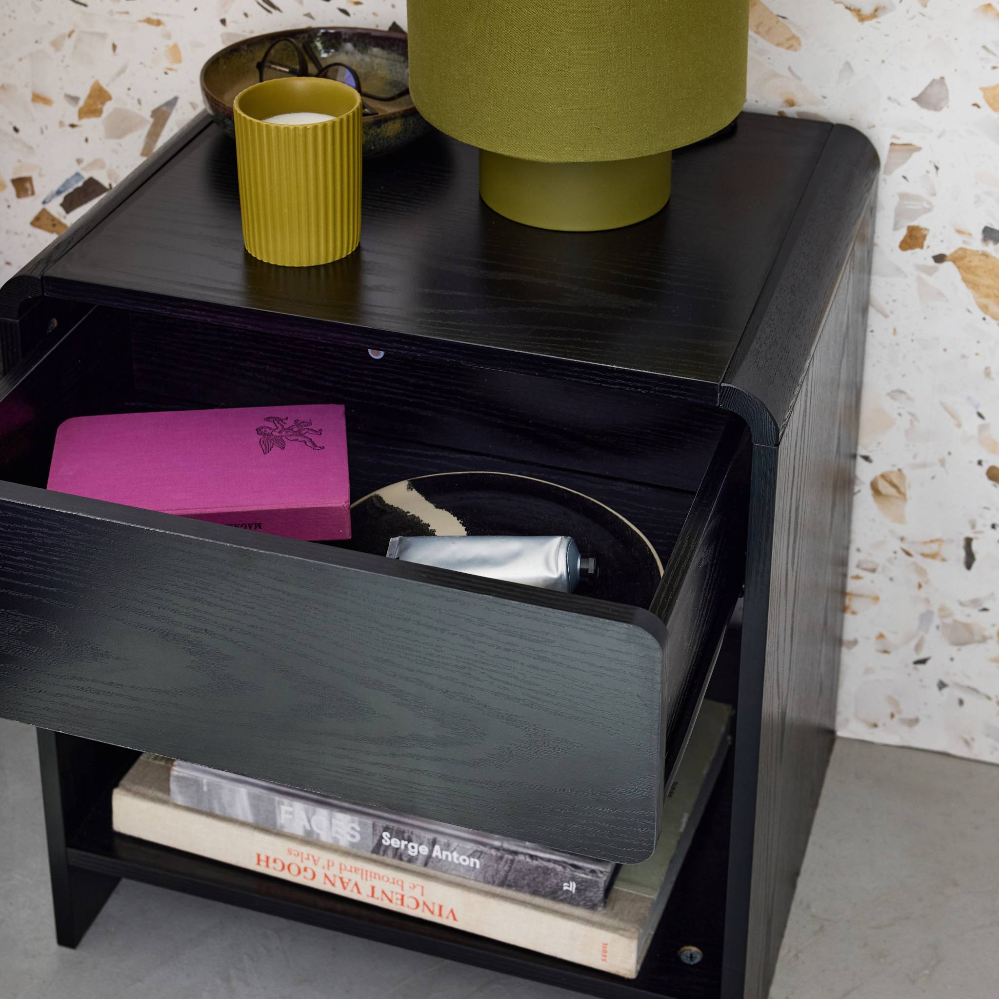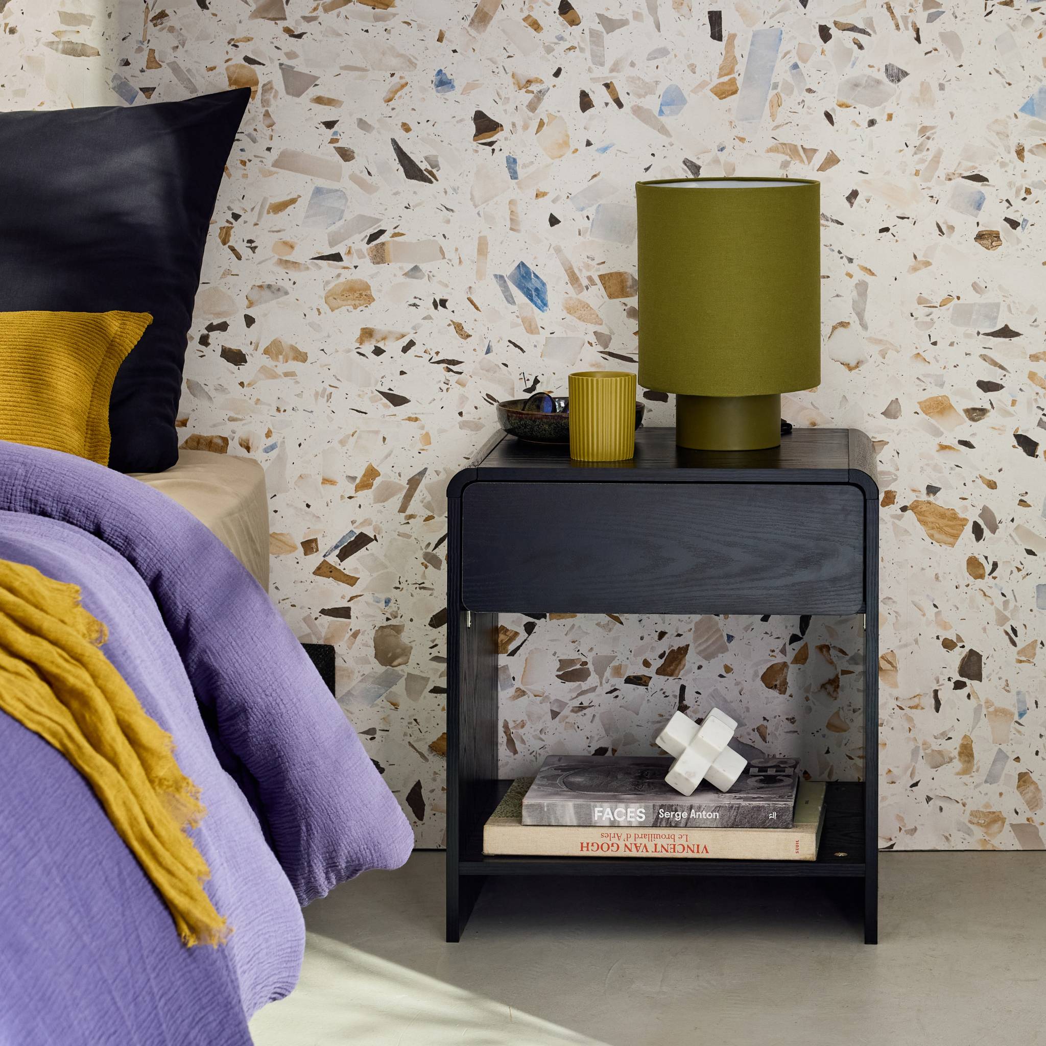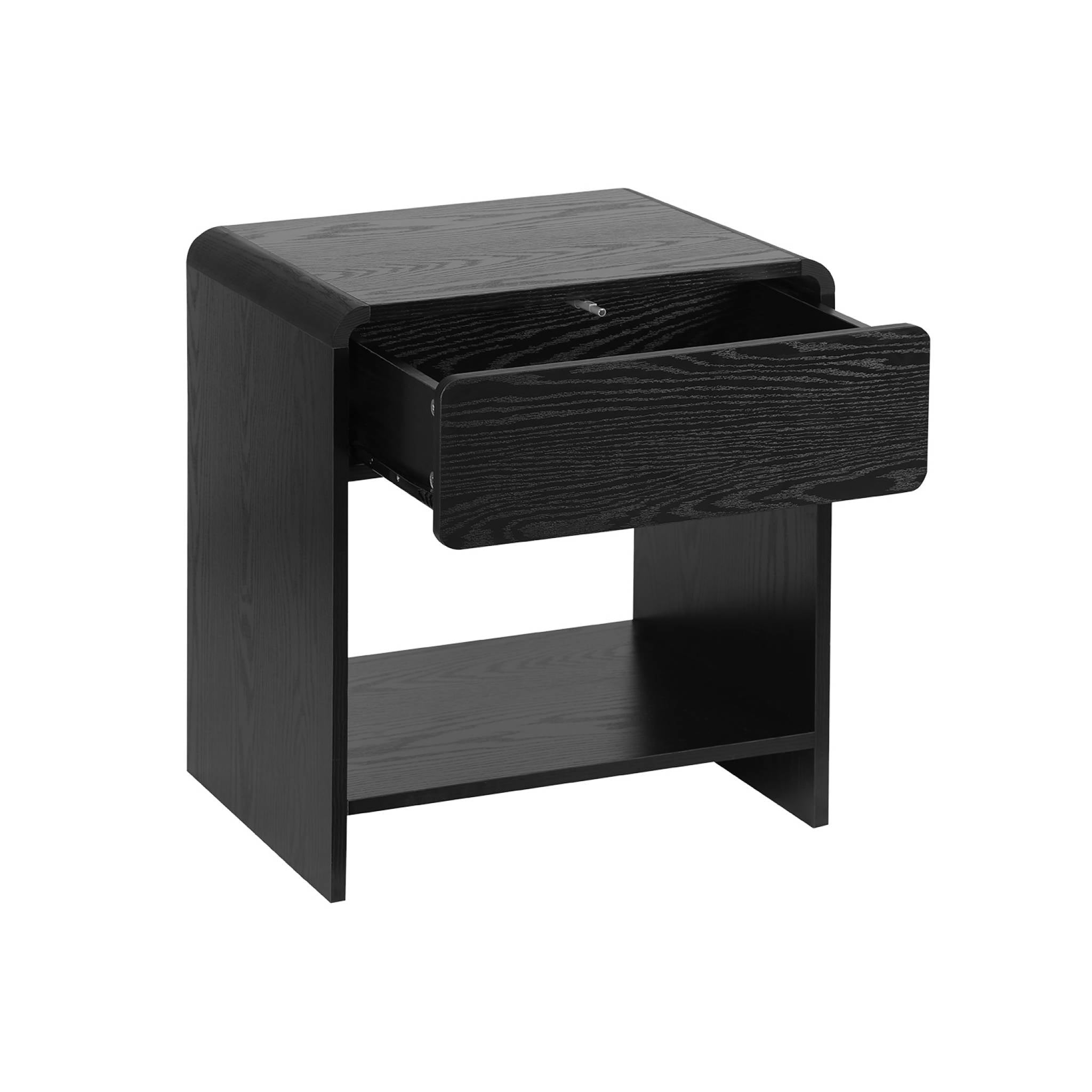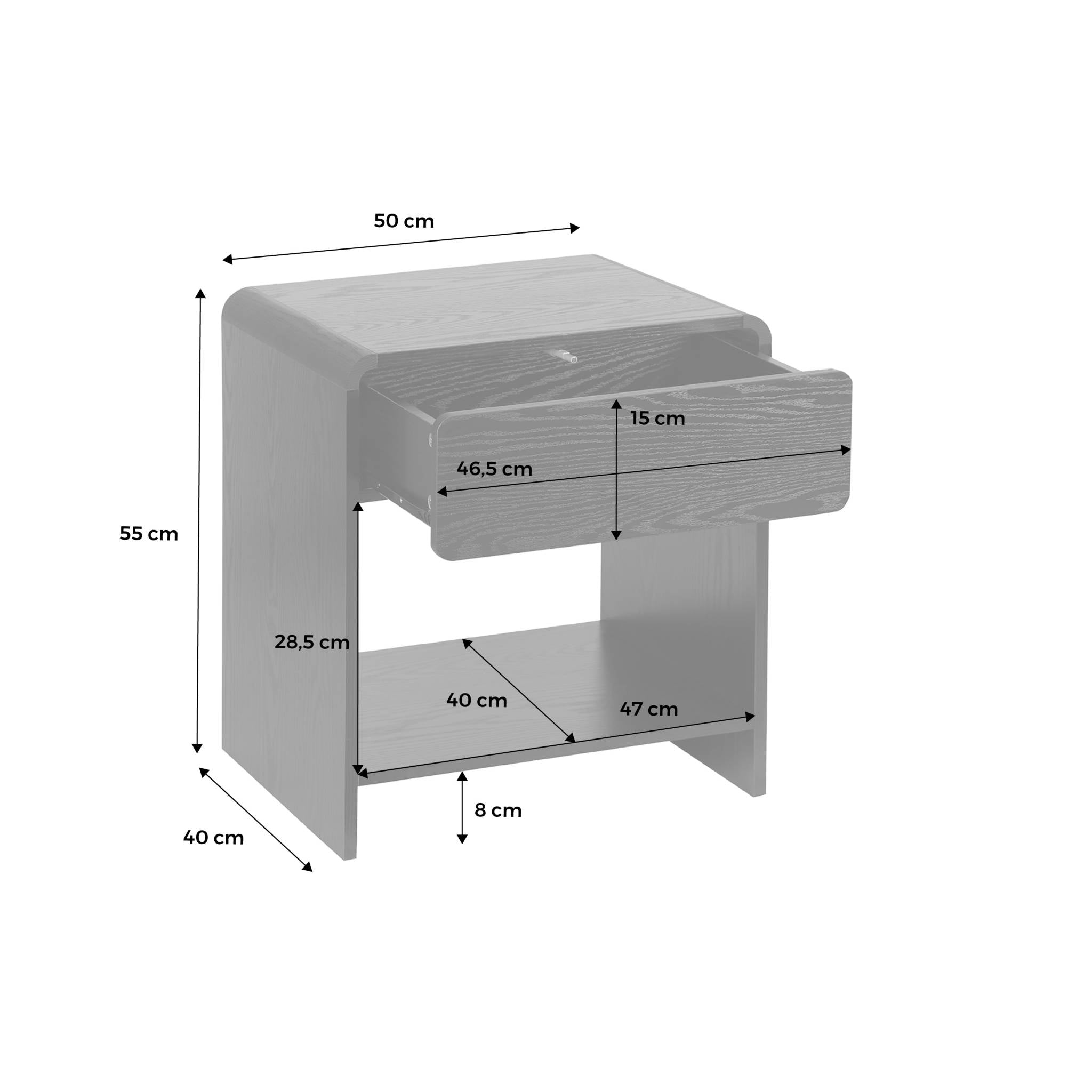 sweeek - Rond nachtkastje in houtdecor, 1 lade en 1 plank