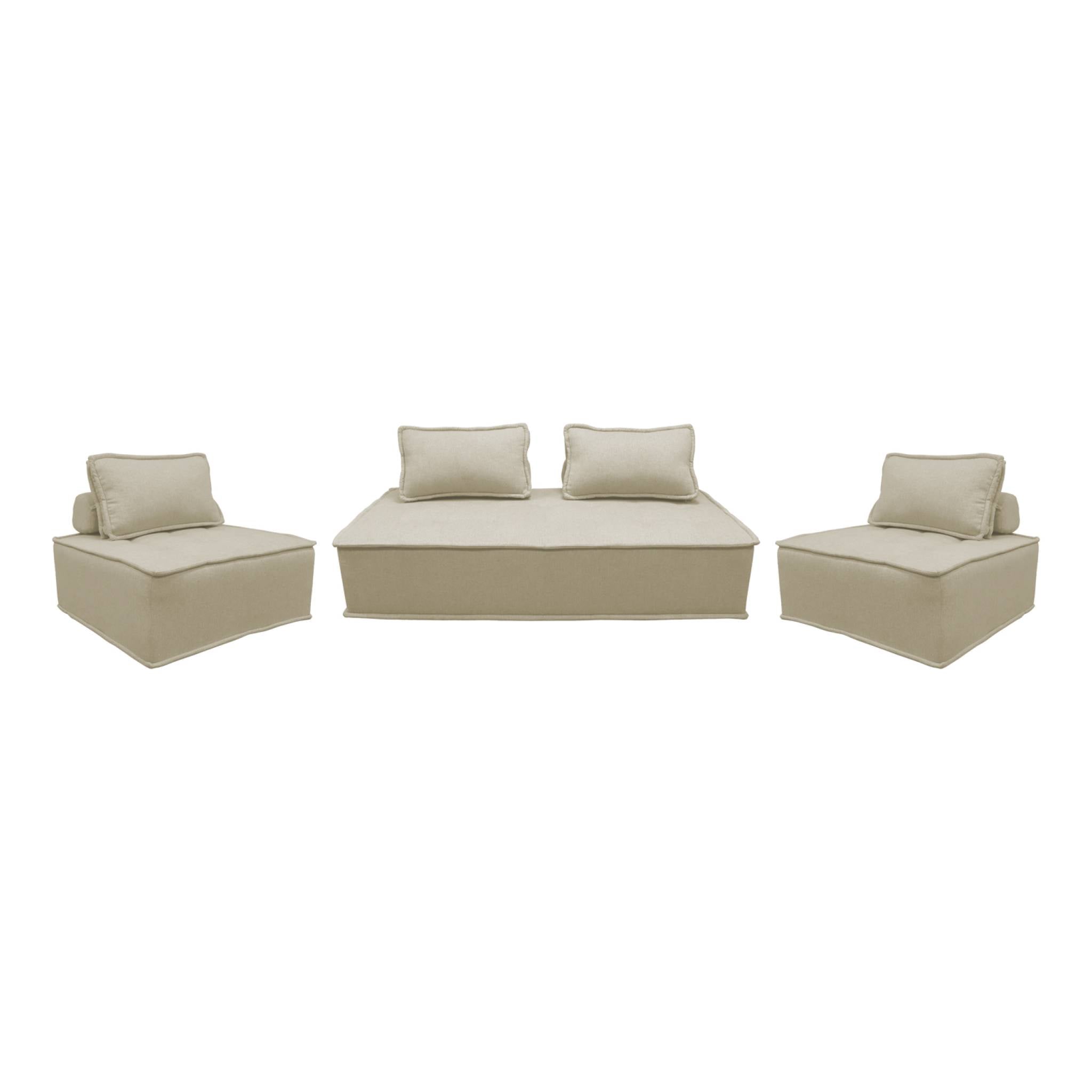 sweeek - Set van 2 fauteuils met 2-zitsbank in stof, met kussen