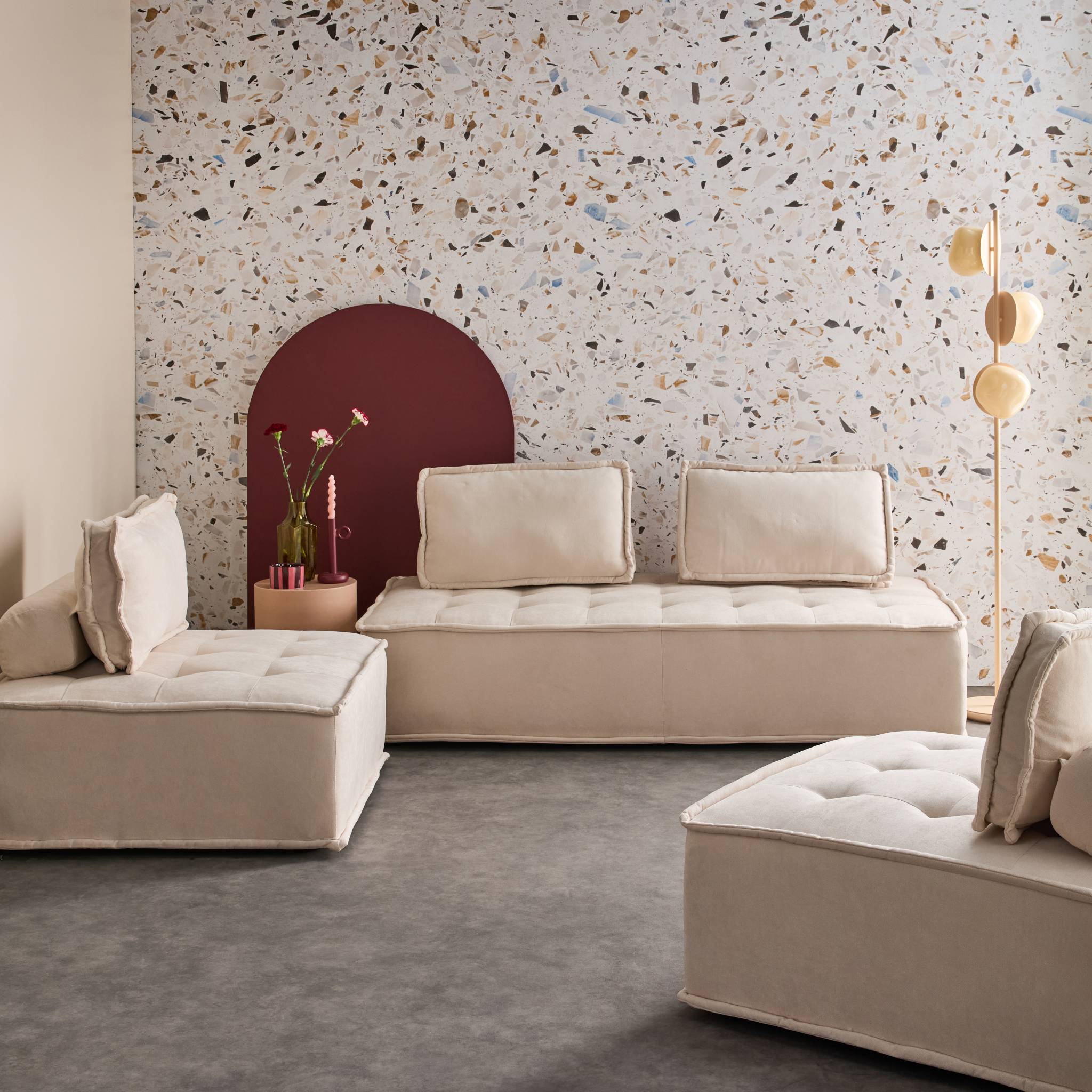 sweeek - Set van 2 fauteuils met 2-zitsbank in stof, met kussen