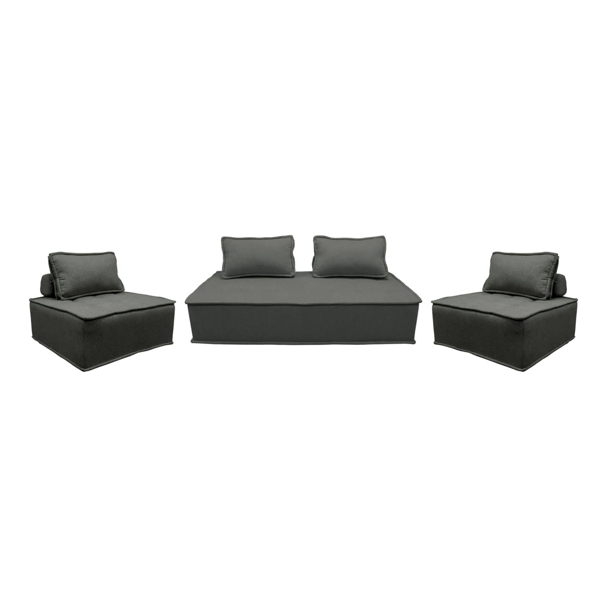 sweeek - Set van 2 fauteuils met 2-zitsbank in stof, met kussen