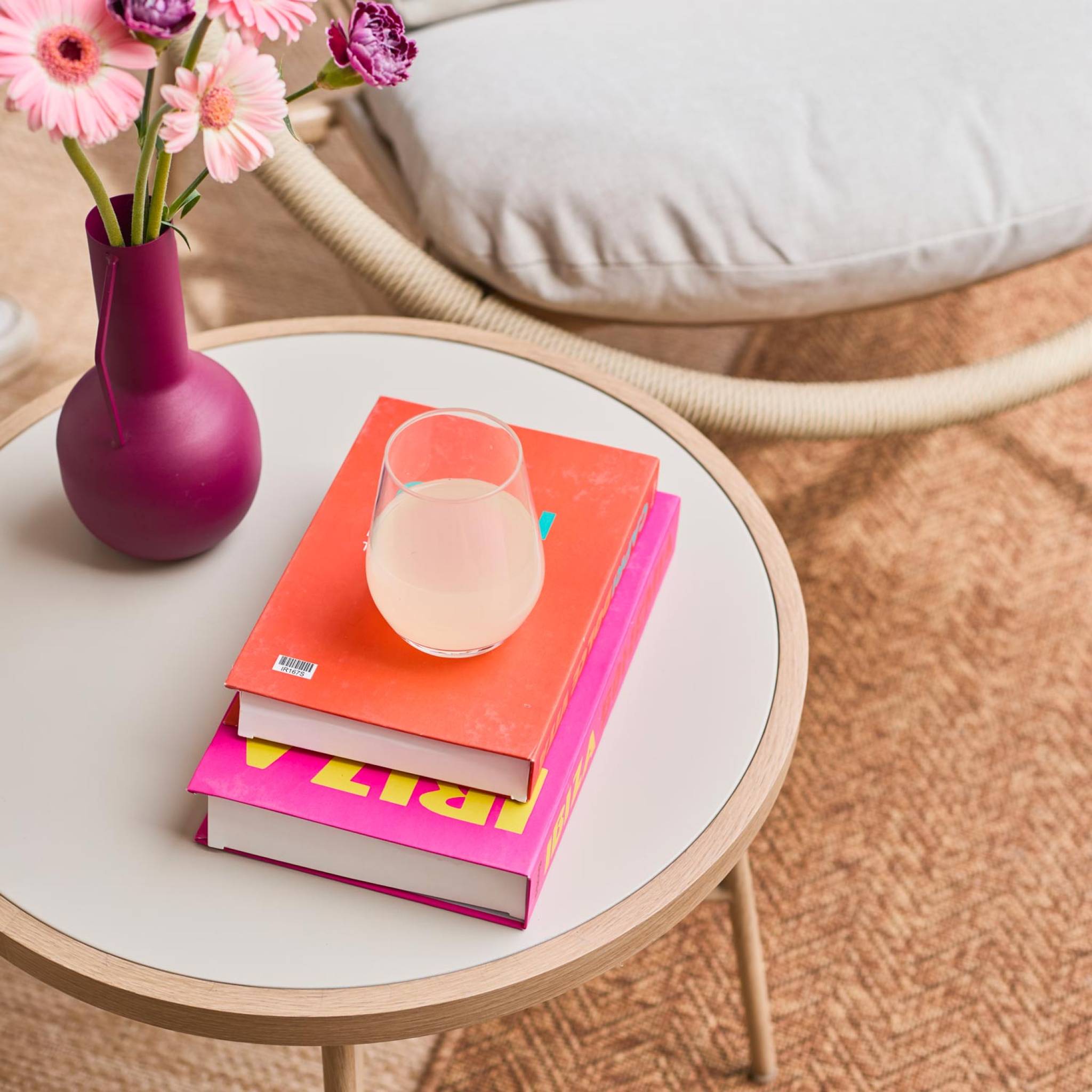 sweeek - Set van 2 tuinstoelen met stalen en rotan tafel
