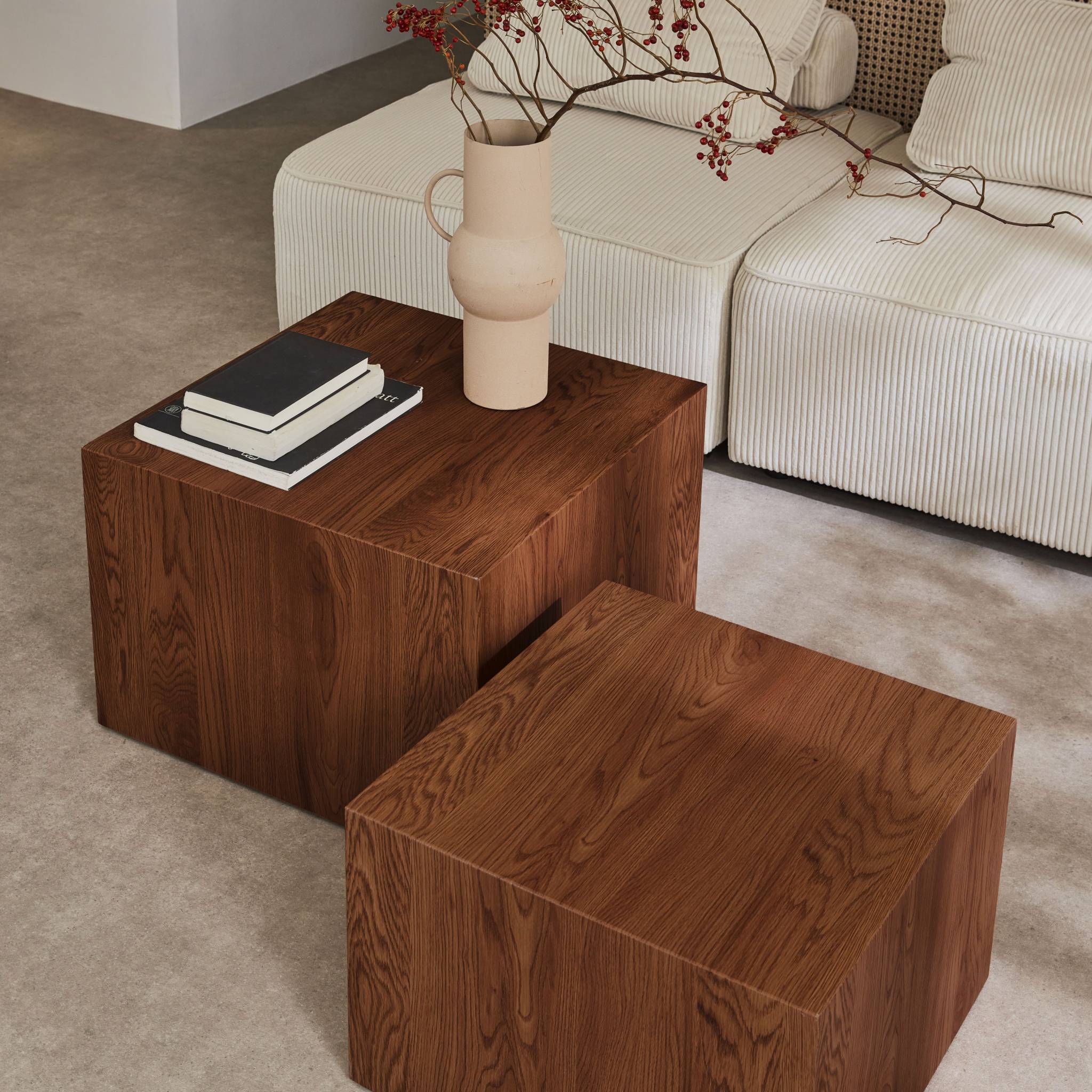 sweeek - Set van 2 vierkante salontafels met houteffect