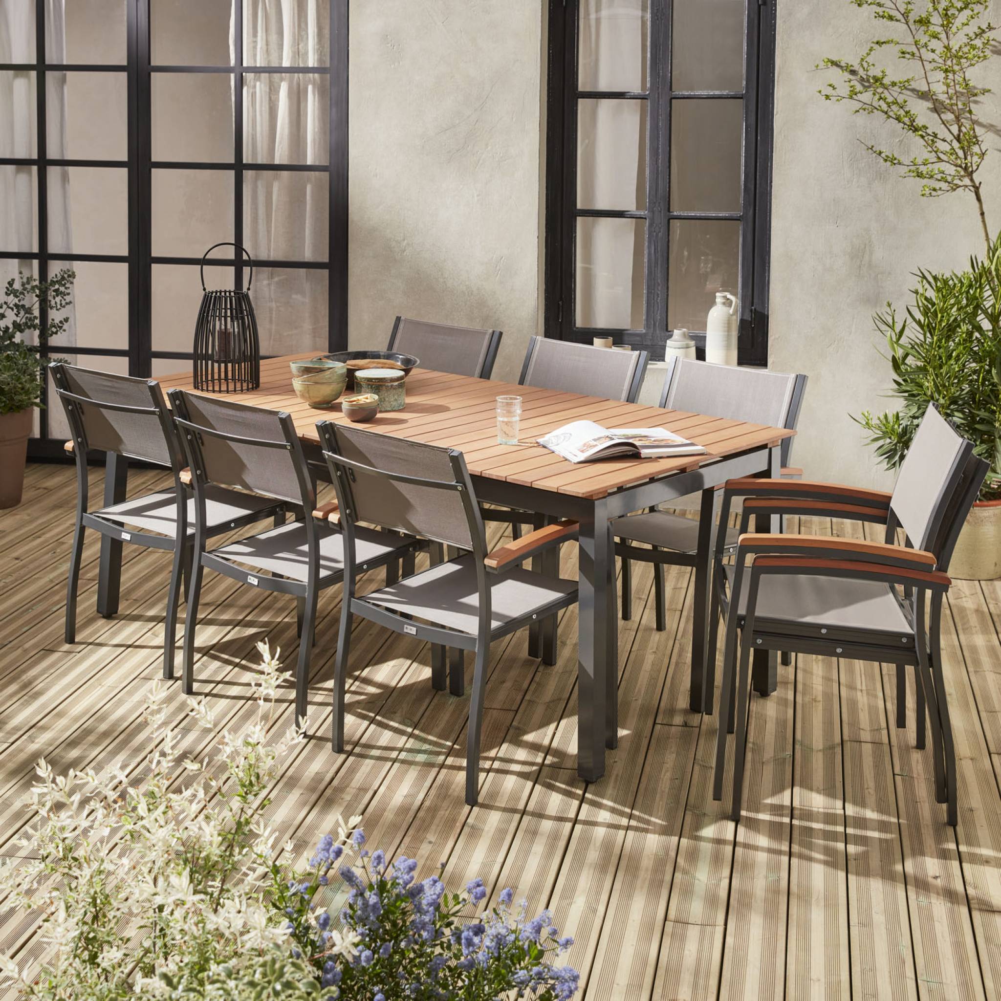 sweeek - Tuinset hout en aluminium met 8 armstoelen