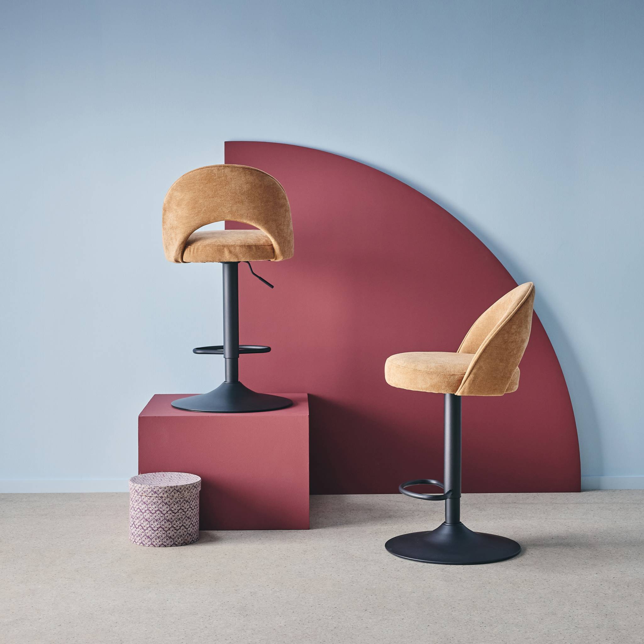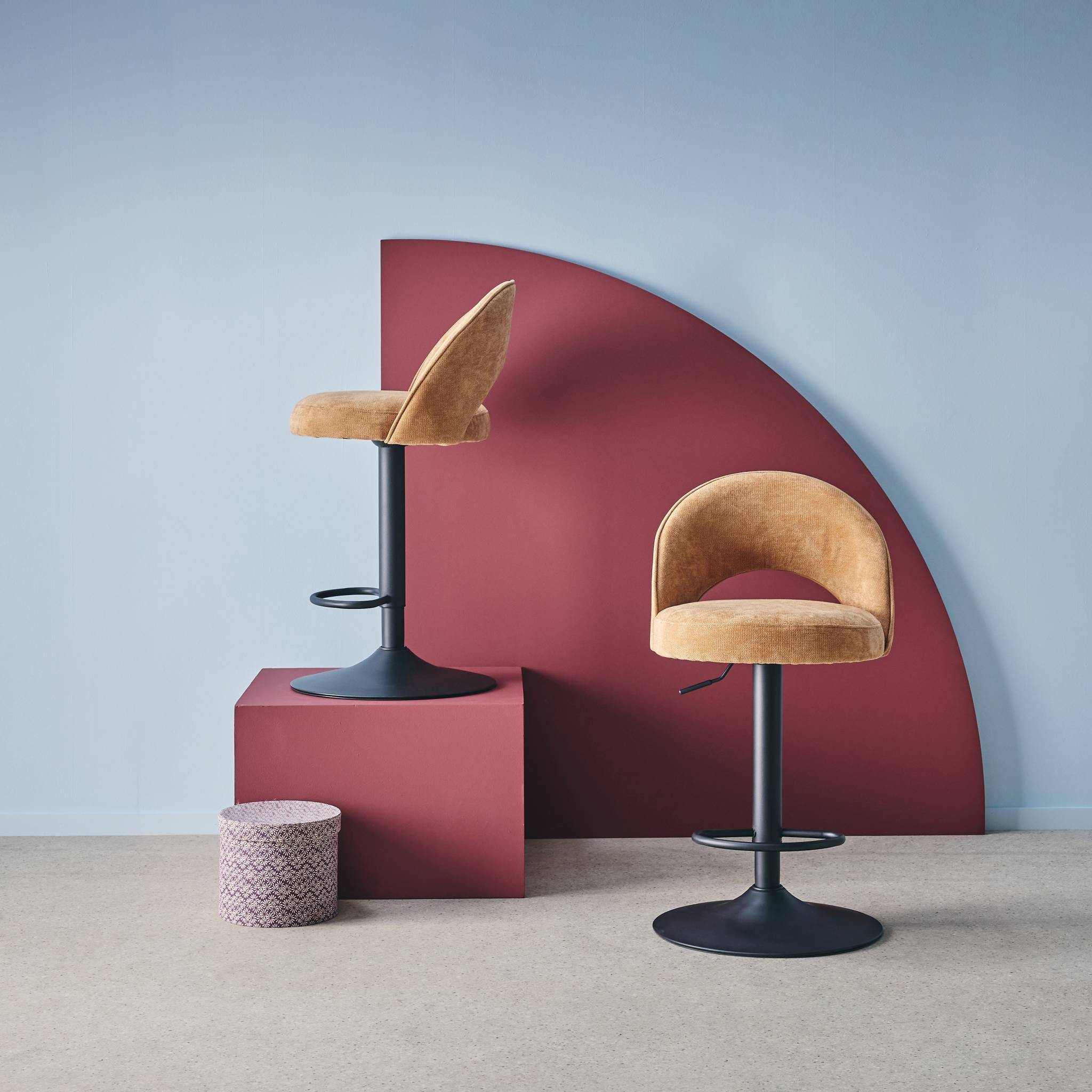 sweeek - Verstelbare stoffen barstoel met zwarte metalen basis (set