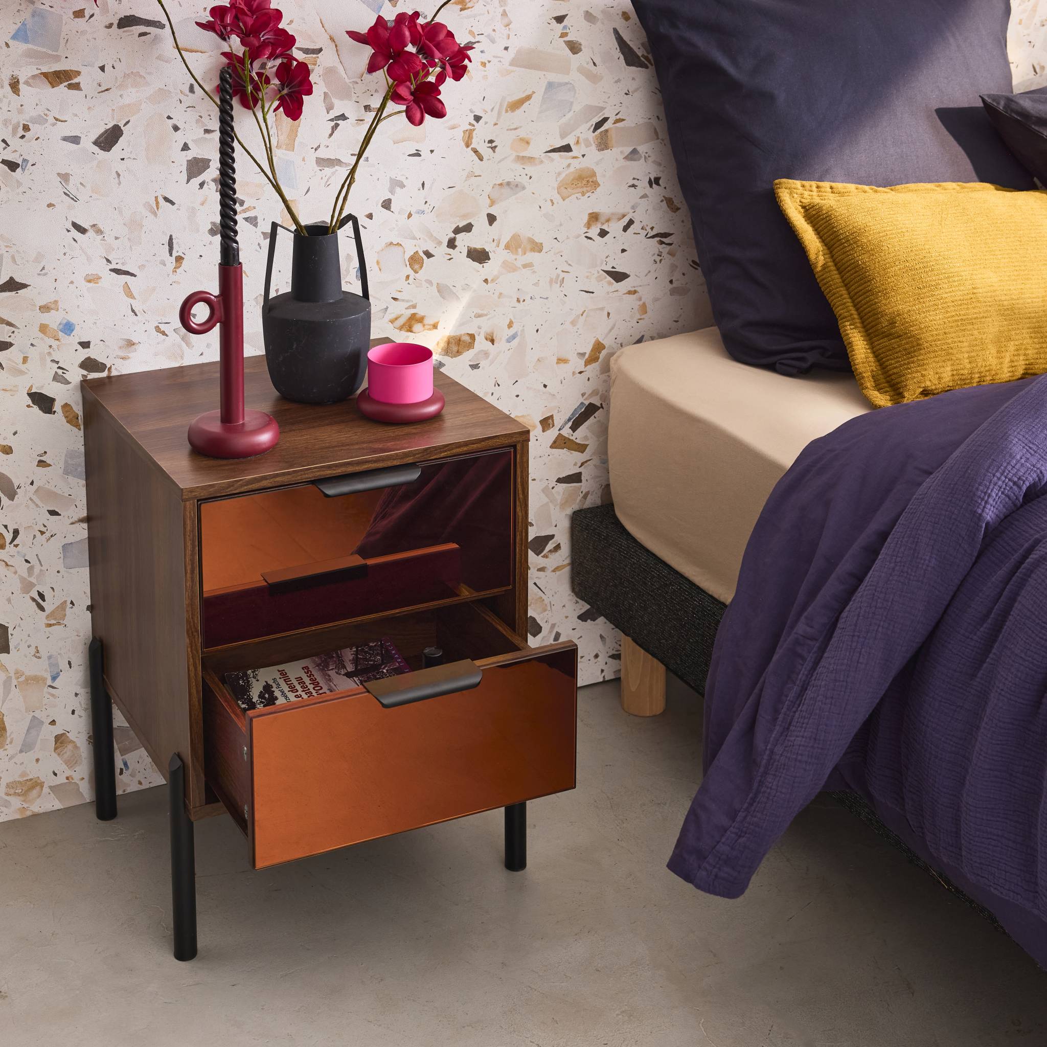 sweeek - Vintage nachtkastje met 2 laden, houteffect en rookkleurig
