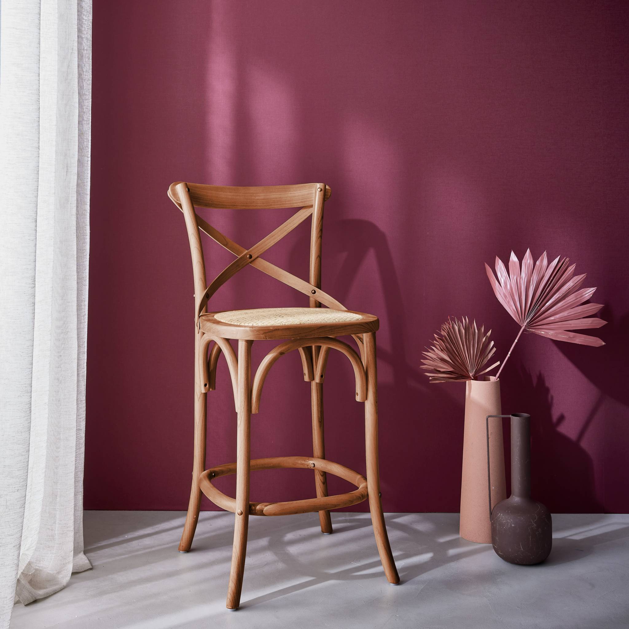 sweeek - Vintage rubberhouten bistro barkruk met voetensteun