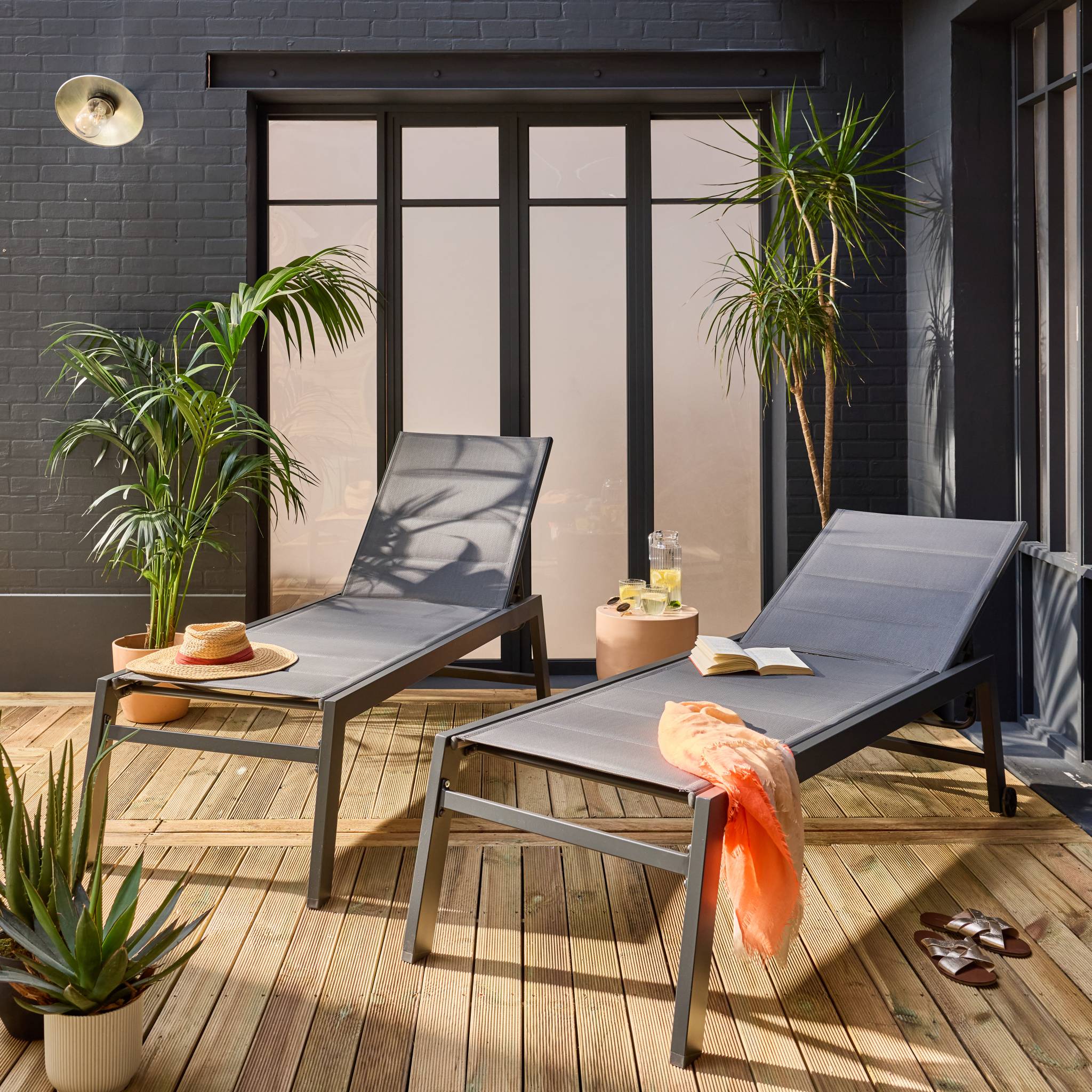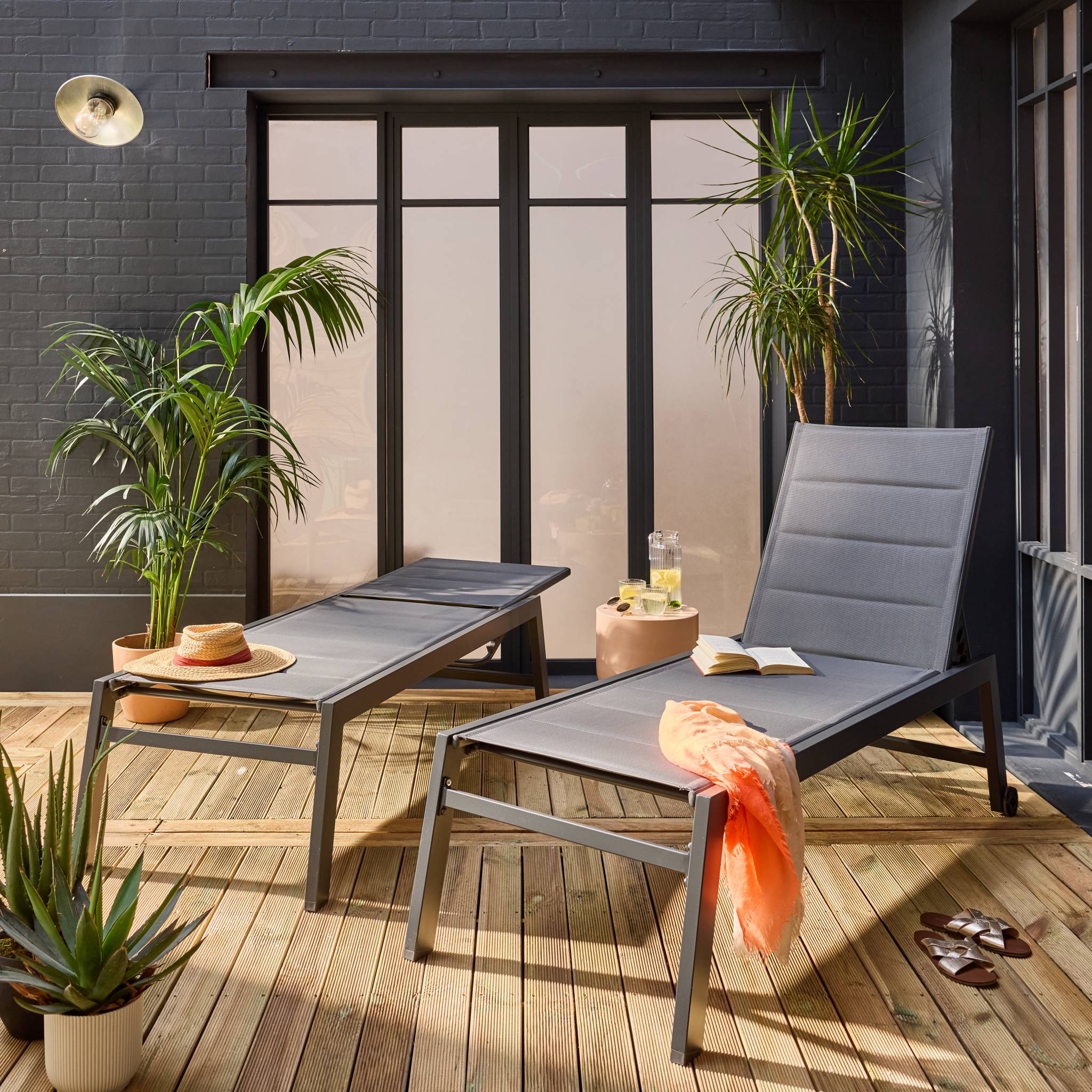 sweeek - Zonnebed van gewatteerd textilene en aluminium met meerdere