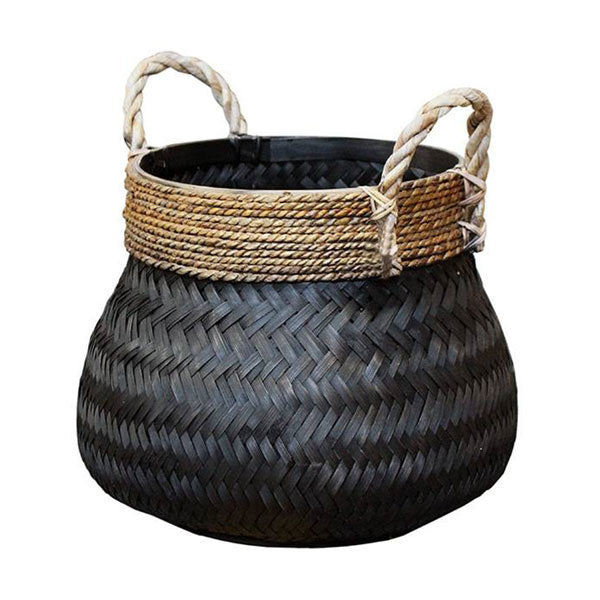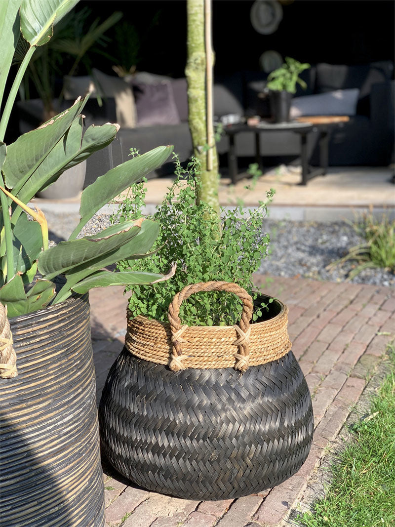Sweet Living - Zwarte Bamboe Mand - Ø34xH32 cm