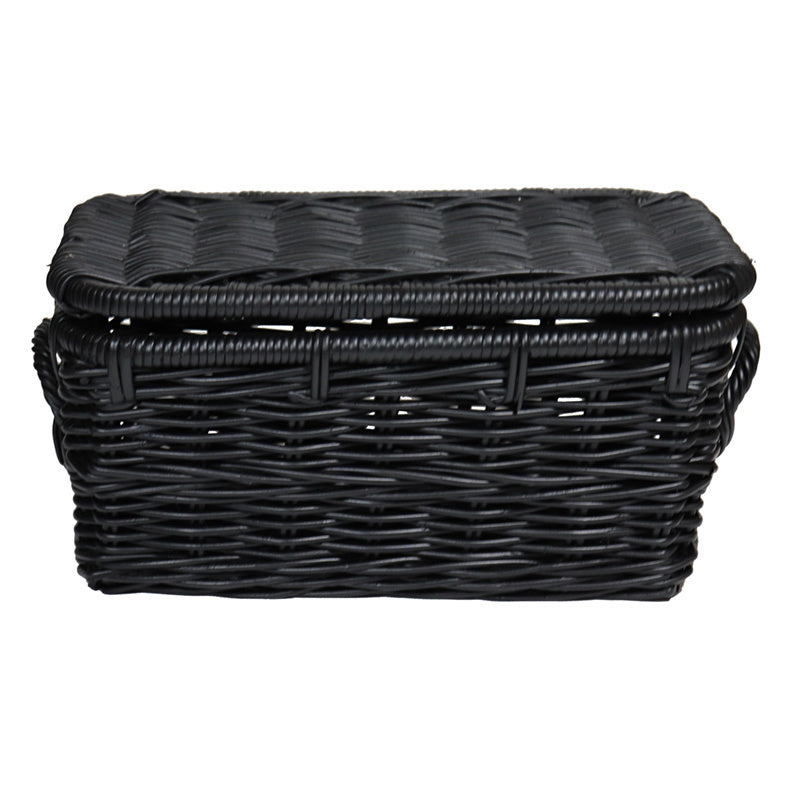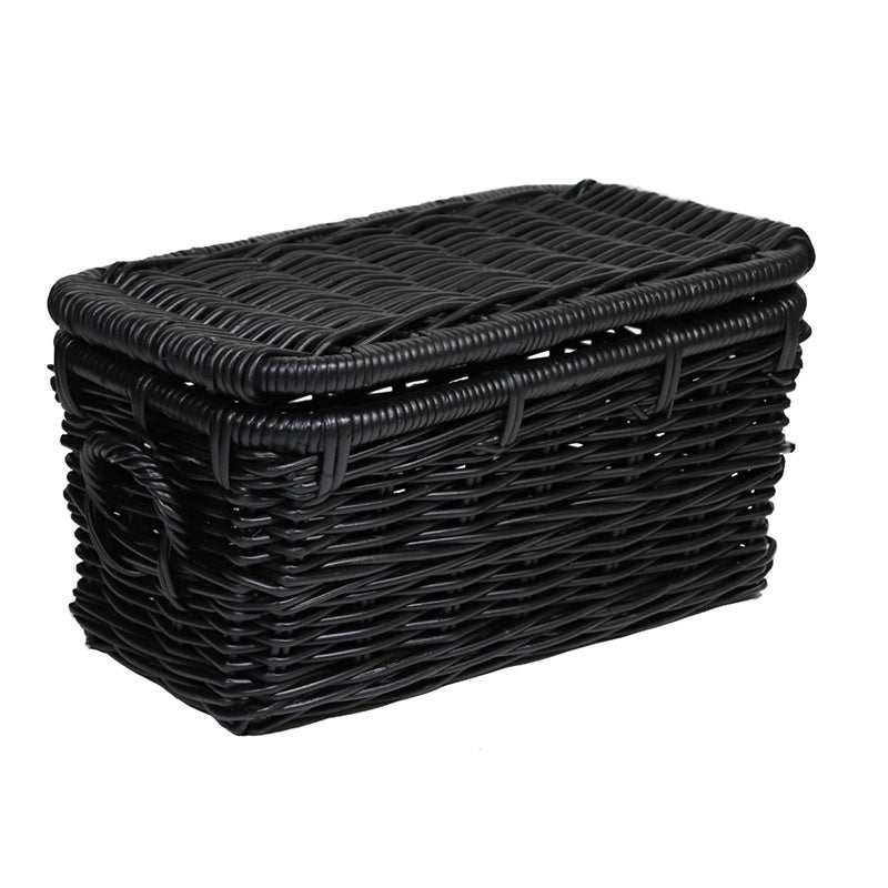 Sweet Living - Zwarte Rieten Mand Met Deksel - 50x28xH26 cm